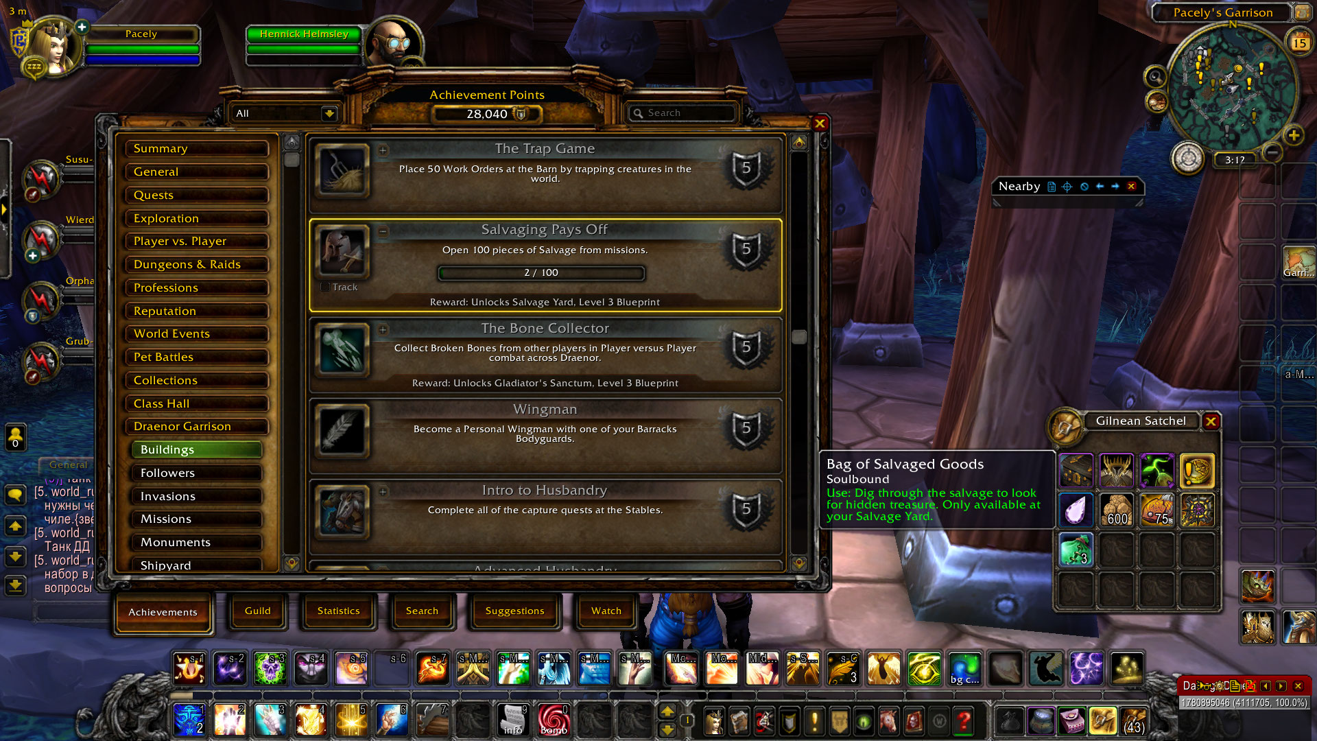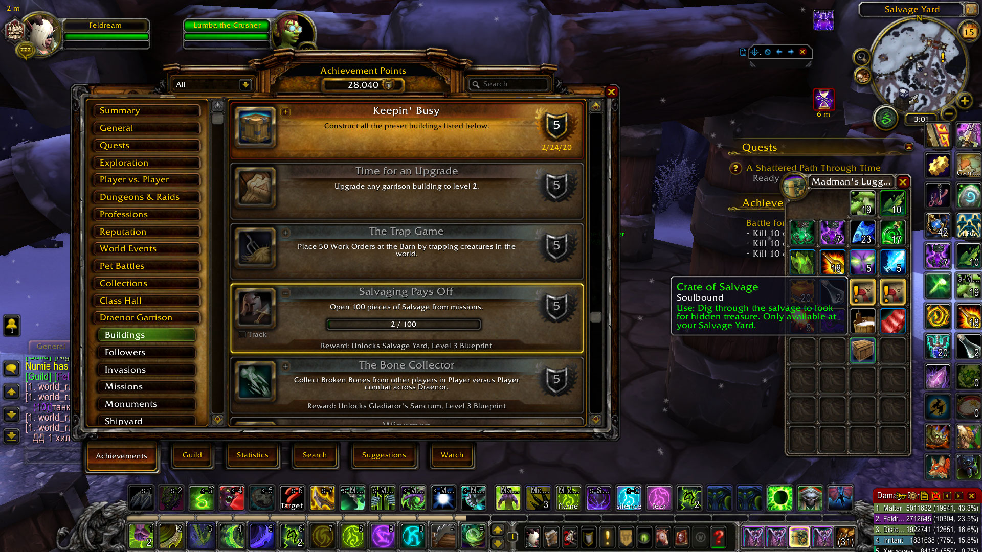 | Description | Salvage Yard Level 1 items https://www.wowhead.com/item=114116/bag-of-salvaged-goods do not count for the achievement https://www.wowhead.com/achievement=9468/salvaging-pays-off Salvage Yard Level 2 items https://www.wowhead.com/item=114119/crate-of-salvage do not count for the achievement https://www.wowhead.com/achievement=9468/salvaging-pays-off The achievement https://www.wowhead.com/achievement=9468/salvaging-pays-off can't be progressed. | ||||
