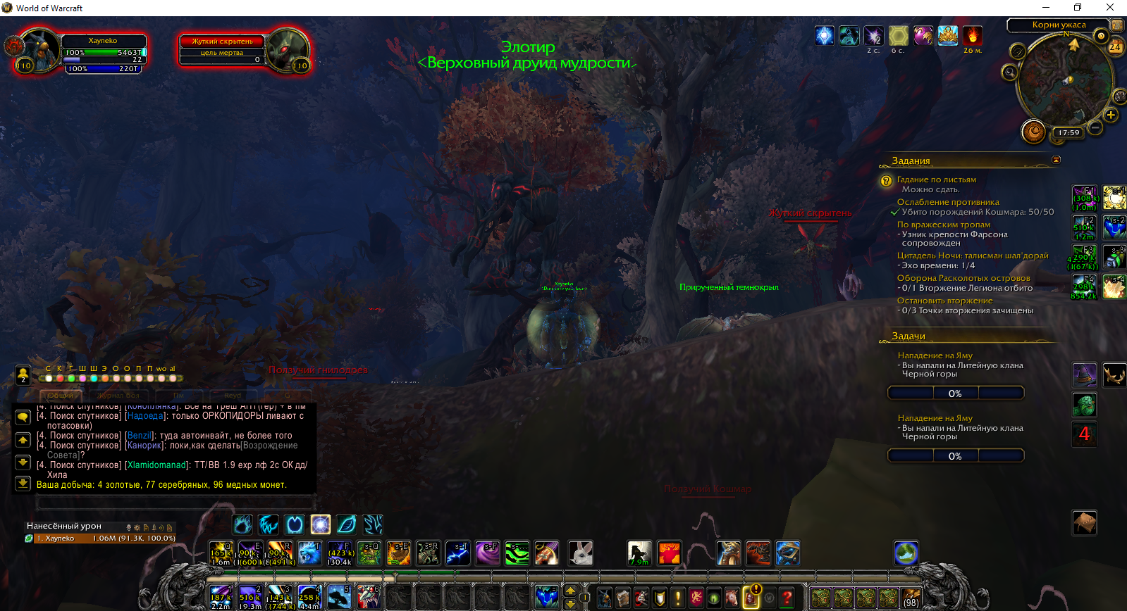 Квест который дает Тиранда " На расстоянии вытянутой руки", тоже не работает- надо найти Малфуриона, но тот который находится у озера не засчитывается как найденный. В следствии квест не засчитывается. У меня этот и следующий квест последнии до достижения "Первопроходец Расколотоых Островов" |