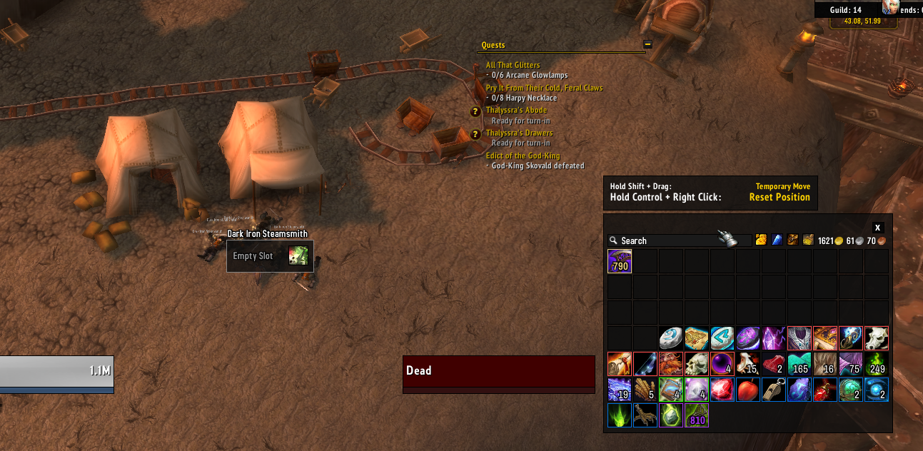 | Description | I'm farming recipe for Shadowmask and mobs like Dark Iron Steamsmith don't drop loot at all empty loot tables.(Not even gray item's) Contacted GM and he checked and said it does not work so I made report for it. Need item for tmog and mount farm. I disabled addon for UI still same problem. | ||||