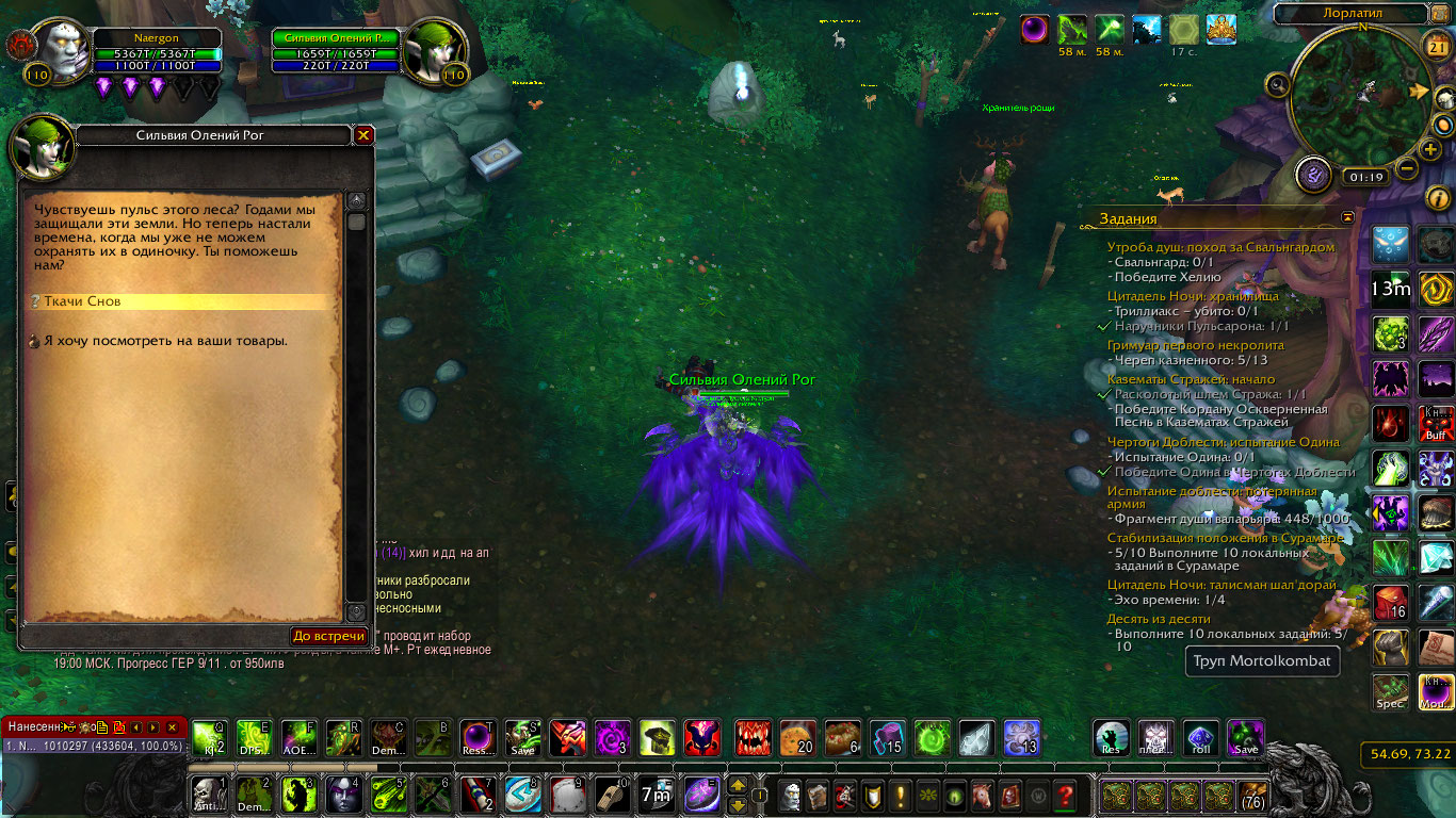 | Description | Задание посланника Ткачей Снов сейчас доступно, но не отображается на карте. Подобное происходило и раньше, но рандомно у 1 персонажа и исправлялось сменой локации/релогом. Сейчас же задание не отображается у всех 4 персонажей, которым доступны локалки и задания посланника (точнее сначала на одном я его увидел, потом оно пропало), релог, отключение аддонов, чистка кэша и исправление в лк не помогли ни 1 персонажу. Возможно дело в том, что сейчас активна атака легиона на Валь'шару (задание пропало приблизительно в тот же время, когда началась атака). Баг визуальный, при выполнении 4 локалок задание можно сдать, хотя на карте оно так и не появилось Баг рандомный, воспроизвести получилось на одном персе (для разработчика, от тестера) | ||||
