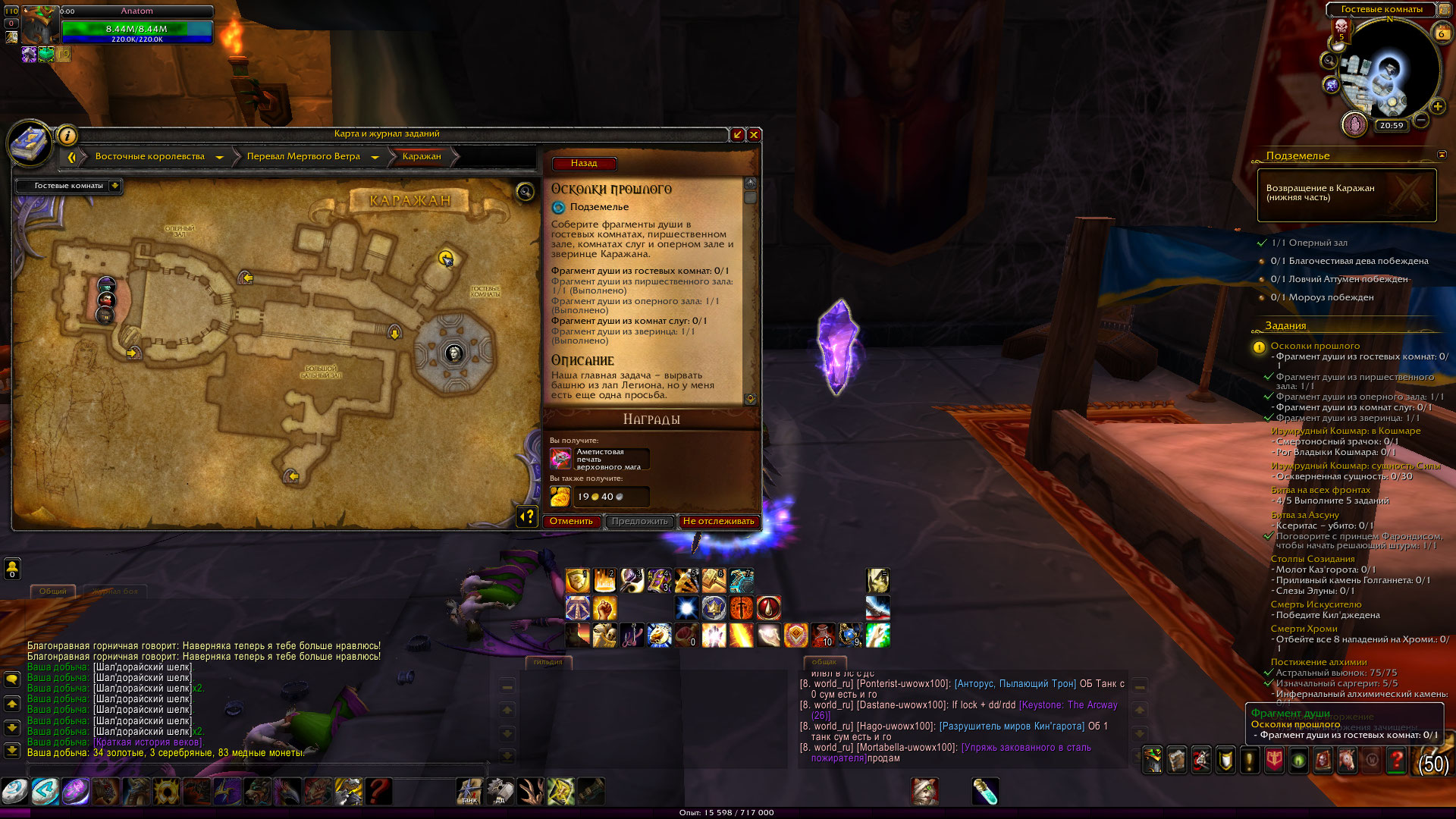 | Description | Собственно сам квест https://ru.wowhead.com/quest=44734 Не засчитываются два кристалла "фрагмент души из комнат слуг" "фрагмент души из комнат гостей" остальные засчитались, при чем они засчитывались по прикосновению, хотя идет каст пару секунд. | ||||