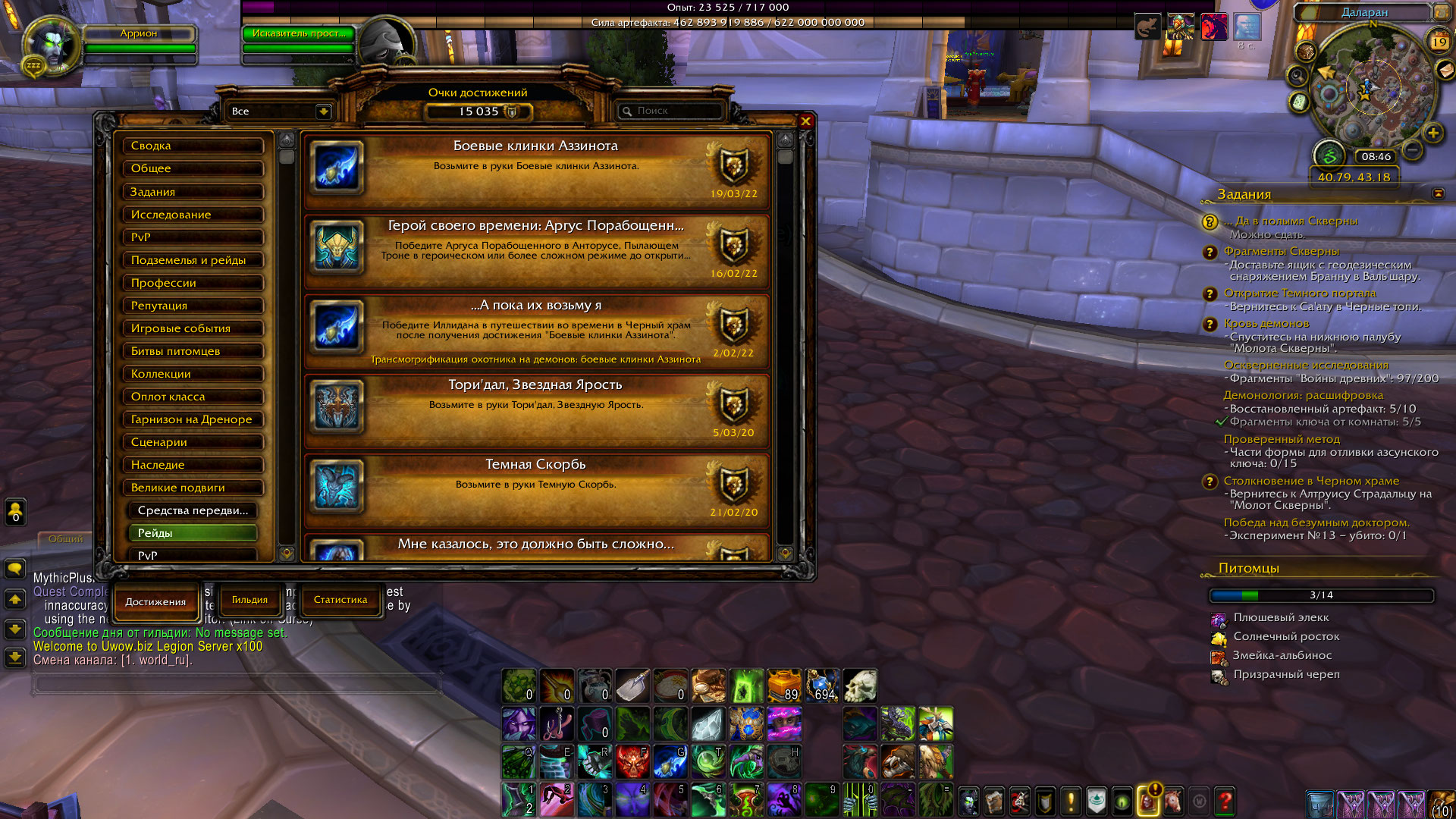 Проверьте критерии сперва. Сперва оба клинка должны быть одеты на КОНКРЕТНОГО персонажа для получения достижения по иллиданкам и только потом персом которым получено это достижение нужно убивать Иллидана в таймволке с получением второго ачивмента. Имеет смысл запросить скриншоты о наличии мечей в руках, а также достижения. |