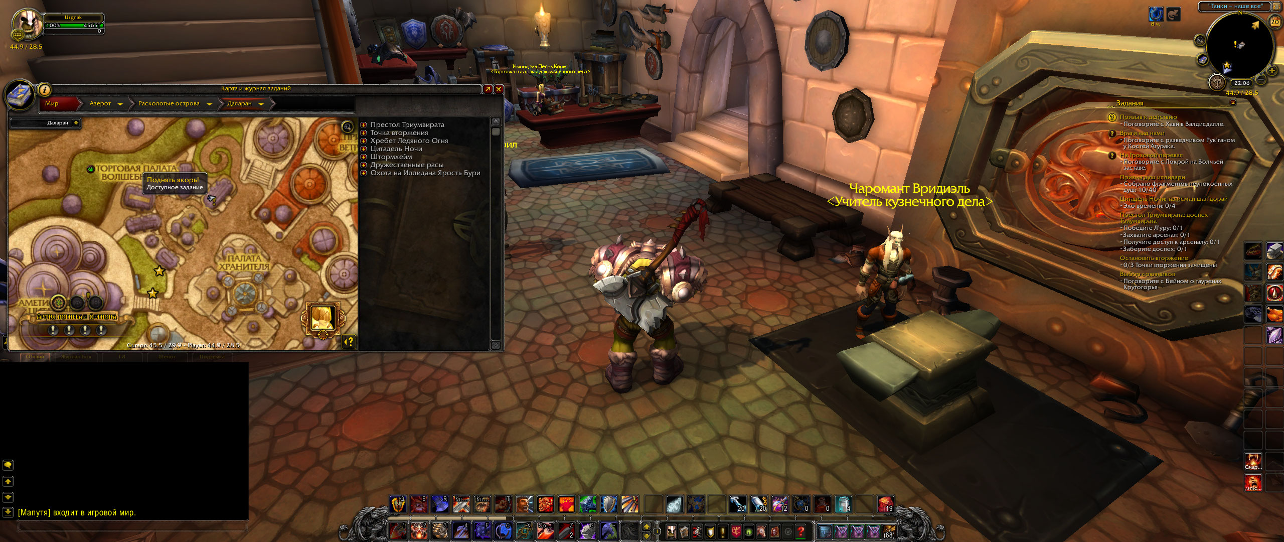 | Description | Персонаж Urgnak. В Даларане (расколотые) нпс https://ru.wowhead.com/npc=106655/%D1%87%D0%B0%D1%80%D0%BE%D0%BC%D0%B0%D0%BD%D1%82-%D0%B2%D1%80%D0%B8%D0%B4%D0%B8%D1%8D%D0%BB%D1%8C выдает квест https://ru.wowhead.com/quest=48054/%D0%BF%D0%BE%D0%B4%D0%BD%D1%8F%D1%82%D1%8C-%D1%8F%D0%BA%D0%BE%D1%80%D1%8C На карте отметка есть , но взять его не могу т.к. у нпса его нет. Не понимаю, что нужно сделать, чтобы этот квест стал доступен. Цепочка кв кузнечного дела завершена. | ||||