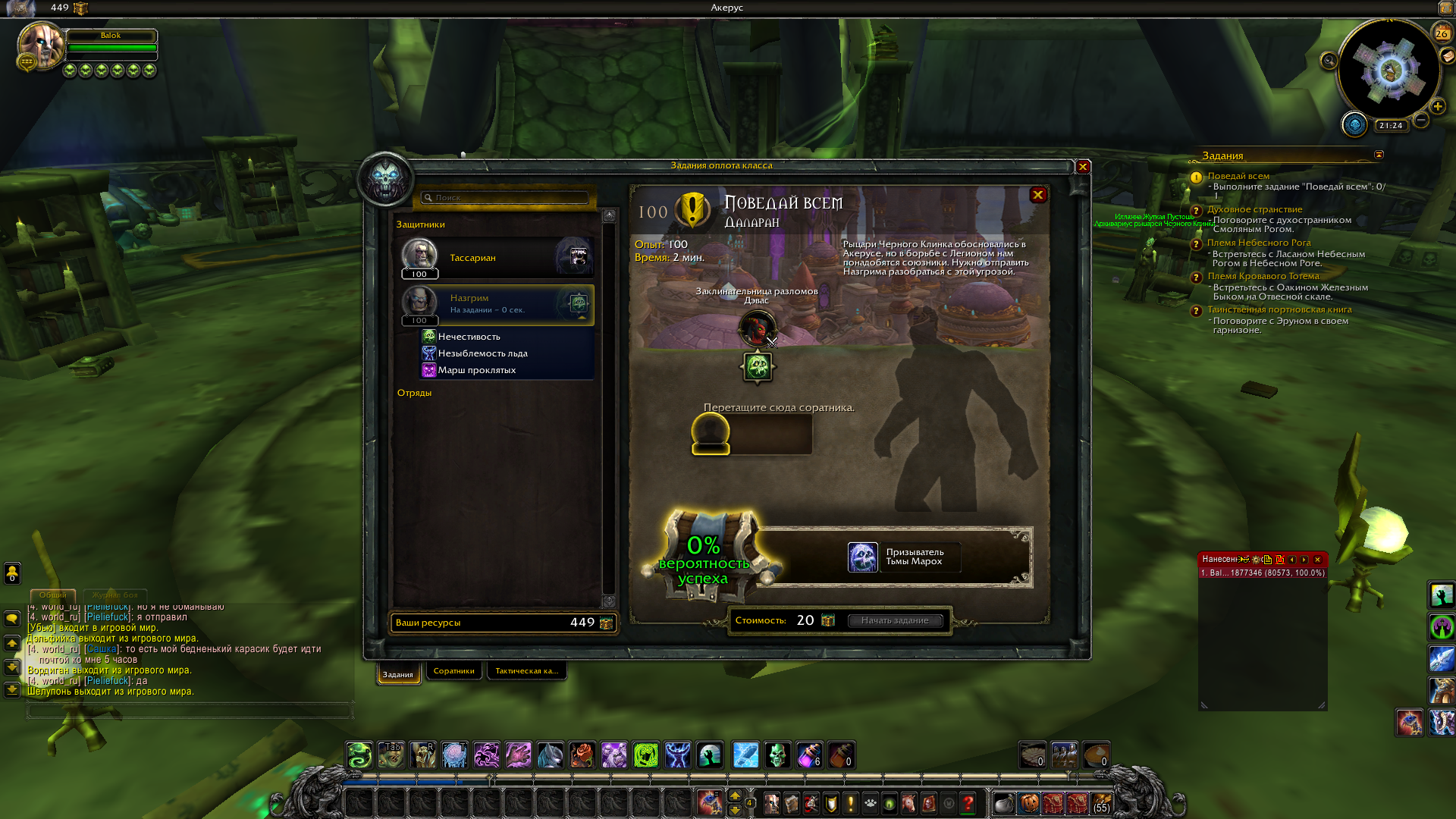 | Description | В цепочке оплота дк кв нужно отправить Назгрима на задание, но я не могу это сделать доска заданий показывает будто Назгрим уже на на задании и таймер на него висит 0сек вторые сутки | ||||