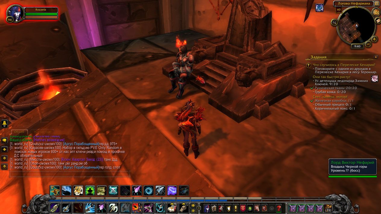 актуальное: 4. Когда подходишь к Валестраз Порочный , Техник Крыла Тьмы должны убегать 5. Лорд Виктор Нефарий должен стоять и обращать Валестраз Порочный своей магией, но у нас его нет. 7. Залы раздора не заселены. 8. Хромаггус должен сидеть в клетке, которую мы должны открыть рычагом. Попробовал открыть просто так, дверь не открывается рычагом. 11. Лорд Виктор Нефарий должен исчезнуть и появиться на площадке где мы сражаемся, но у нас он сразу ломится на нас. 12. Треш, который был воскрешен боссом Нефариан , бессмертен и его нельзя убить. |