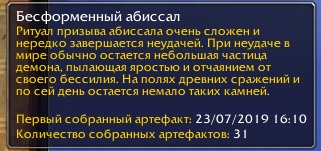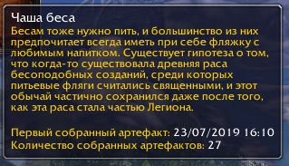 И по личному опыту на Дреноре все также! С маленькой разницей артефактов надо собрать в несколько раз больше!) |