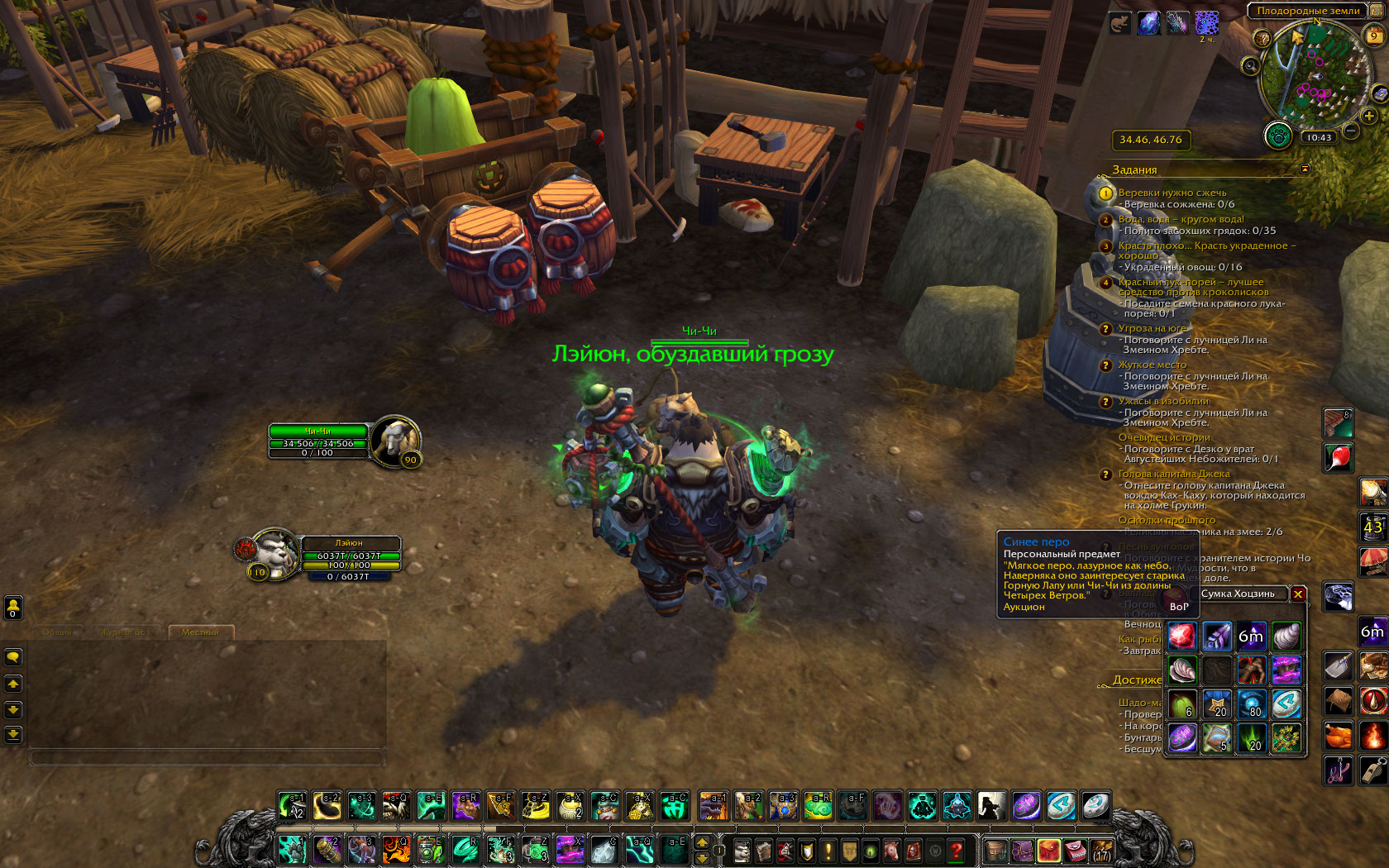 | Description | Отсутствуют дейли-квесты у https://ru.wowhead.com/npc=58709/чи-чи на сдачу https://ru.wowhead.com/item=79265/синее-перо (https://ru.wowhead.com/quest=30400/синее-перо-для-чи-чи), хотя само перо в сумке присутствует. Согласно Wowhead, этот квест должен быть доступен до тех пор, пока персонаж не повысит репутацию с https://ru.wowhead.com/npc=58709/чи-чи до "Лучший друг", после чего должна начаться цепочка квестов https://ru.wowhead.com/quest=31338/заблудший-барашек. Такая же проблема имеется со https://ru.wowhead.com/faction=1276/старик-горная-лапа и https://ru.wowhead.com/quest=30394/синее-перо-для-старика-горной-лапы. Их репутация необходима для достижения https://ru.wowhead.com/achievement=6552/друзья-с-фермы. | ||||