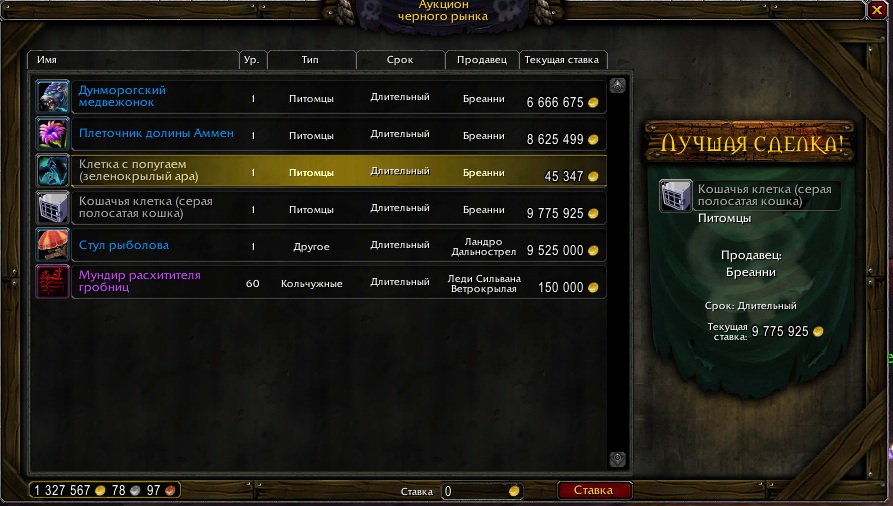 Кстати самый дорогой маунт на обычном рынке 5кк а тут петы по 6-10кк)) Тем более пет который легко добывается с мобов) 9.5кк)) тут явно что-то с ценами!!!!!! |