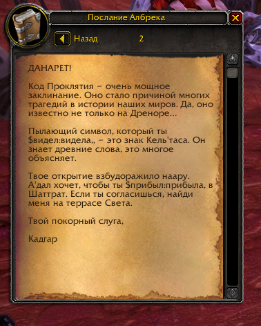 | Additional Information | https://ru.wowhead.com/item=31550/послание-албрека | ||||