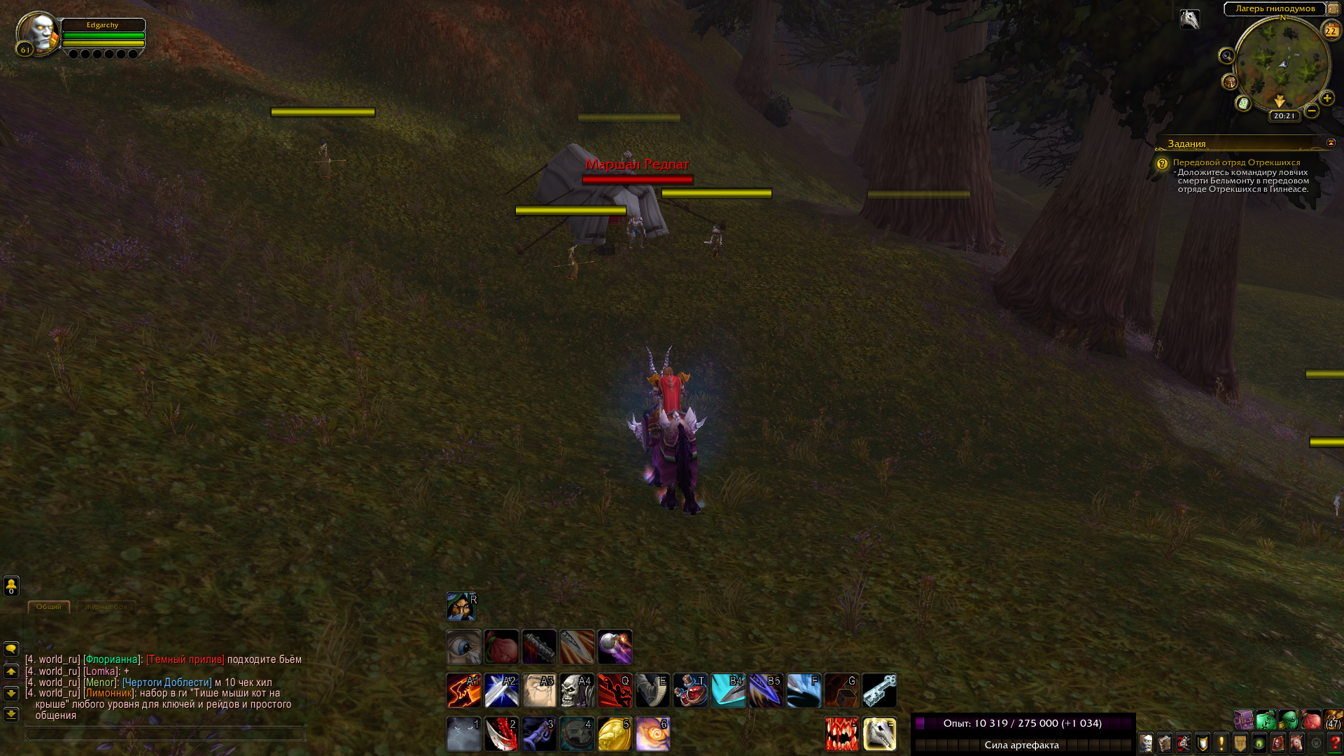 Да, на том месте, при выполнении квеста(начальные квесты нежити - орда), появляются NPC стражи(в фиолетовой одежде), они двоятся и сражаются с воздухом. |