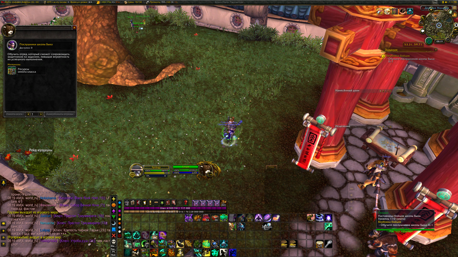 | Steps To Reproduce | Квест не работает корректно, при получение соратников через флаг который стоит рядом с Нпс квест https://ru.wowhead.com/quest=41946/вербовка-бойцов не сдаться | ||||