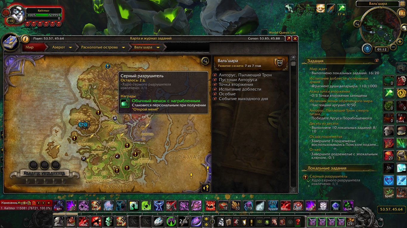 | Description | https://ru.wowhead.com/quest=41484 https://ru.wowhead.com/quest=41486 https://ru.wowhead.com/quest=41487 В Валь'шаре на карте не отображаются, но в некоторых частях локации выдаются (все 3 одновременно), только не в качестве локалок, а как дополнительные задачи. Т.к. на карте не отображаются - проверял координаты, указанные в комментах на вовхеде - нашел только в 53.39, 45.72. Убил, использовал ядро, в списке засчитало все 3, но награда не выдалась. При этом аналогичная локалка в Азсуне работала (по крайней мере за несколько дней до этого, в тот же день не проверял) | ||||