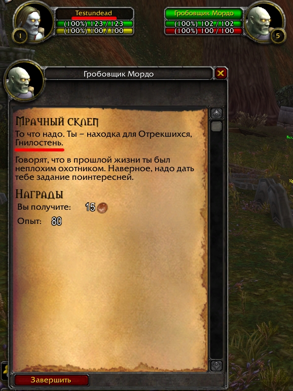 | Description | 1) При взятии https://ru.wowhead.com/quest=28608/ не появляется https://ru.wowhead.com/npc=49425/ , который нас должен сопровождать до входа в Мрачный склеп, откуда уже сам ведёт нас внутрь склепа. 2) При сдаче квеста, в окне диалога не используется никнейм нашего персонажа. | ||||