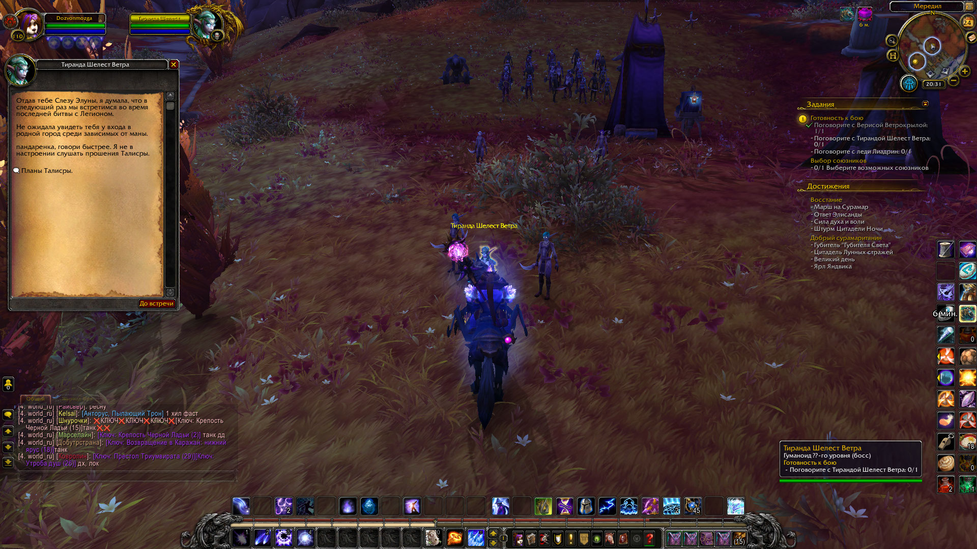 DescriptionНе выполняется задание, "Готовность к бою". Нельзя поговорить с Лиадрин и Тирандой.