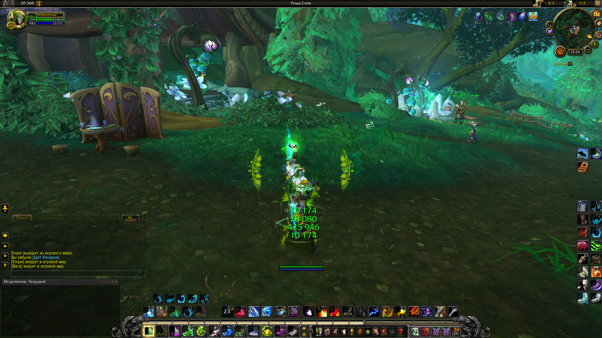 На втором скрине Быстрое восстановление восполнило мне 425.946 единиц Хп, Тогда на мне было 3 хота: омоложение, омоложение (зарождение), жизнецвет.