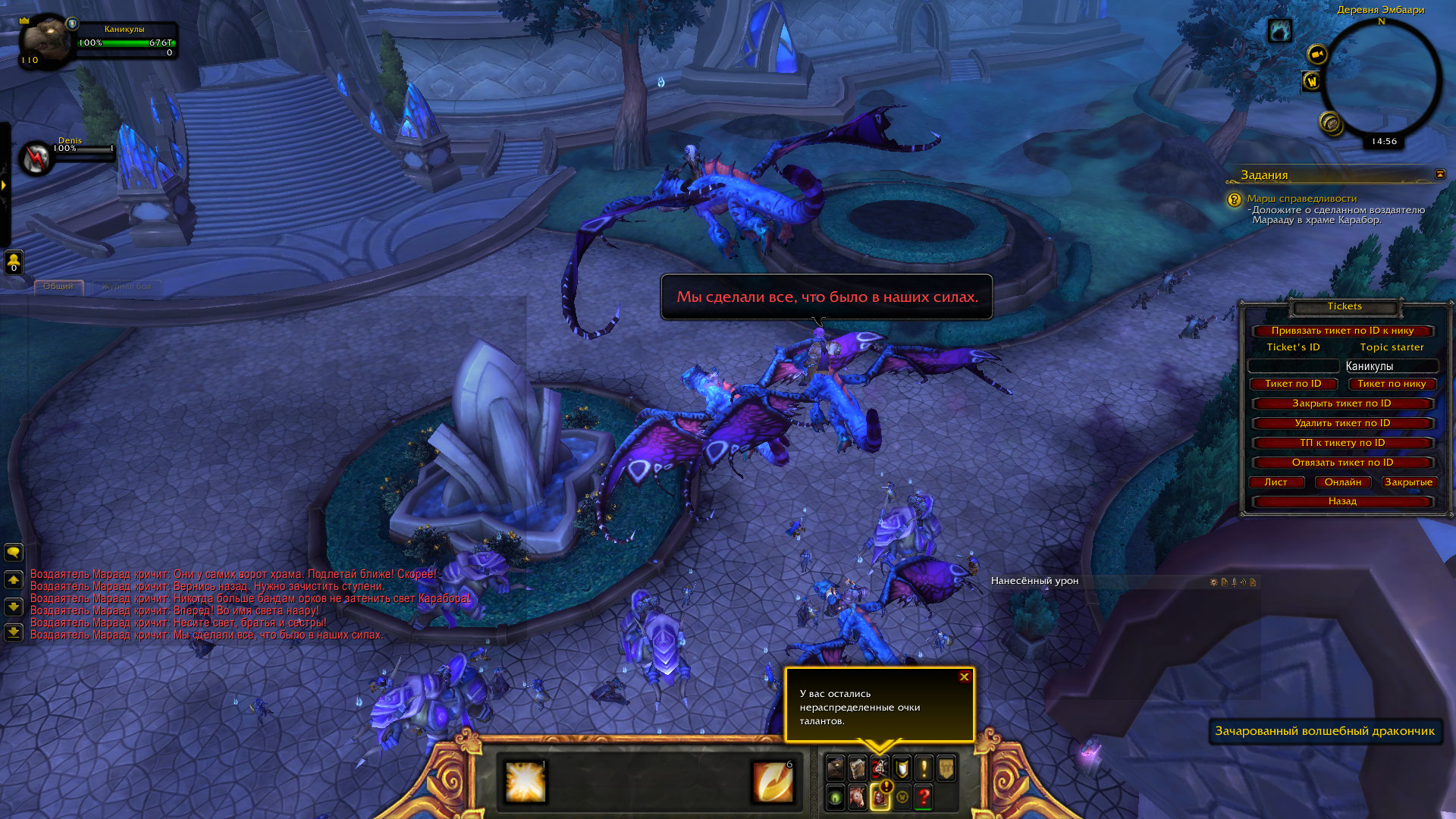 Добрый день. Дело в том, что изначально драконов, на которых мне надо было лететь и выполнять задание, не было, задание я отменила, чтобы взять его заново, но не смогла, т.к. прервалась цепочка и НПС, который его даёт не появился, на его месте был лишь восклицательный знак. Я обратилась в службу поддержки, квест мне вернули, он у меня взят, но на месте, от которого мне надо лететь на драконах, никого нет. |