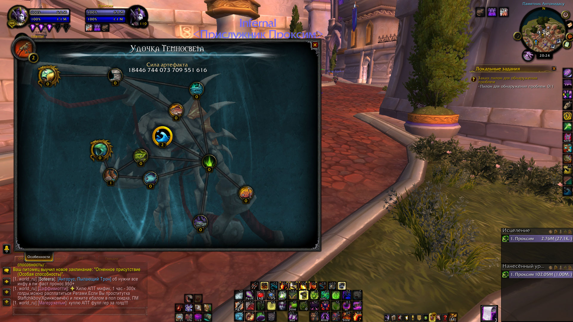 Доброго времени суток. Связался с товарищем, попросил протестировать. Жду фидбека. Сам же попробую снести свой клиент и установить новый (чистый, без аддонов и тд.). Если дело в клиенте, то это должно решить проблему, я думаю. Не удалось случаем разобраться, почему автоматически выбрались таланты? У меня сложилось впечатление, что баг произошёл (возможно) из-за того что по какой-то причине был выбран талант с хождением по воде, тогда как к нему ещё не изучены пути. С другой стороны эта версия вызывает сомнения, ибо качая не одного альта на сервере, начиная прокачивать артефакт (у нас на сервере) можно сразу выбирать почти все таланты развития, что например не мешает без вливания АП в обычные таланты получить "драконов" и всё работает, не крашит и не зависает. В общем, спасибо что занялись моей проблемой. Буду пробовать решать вопрос с клиентом, посмотрим что товарищ скажет. :) |