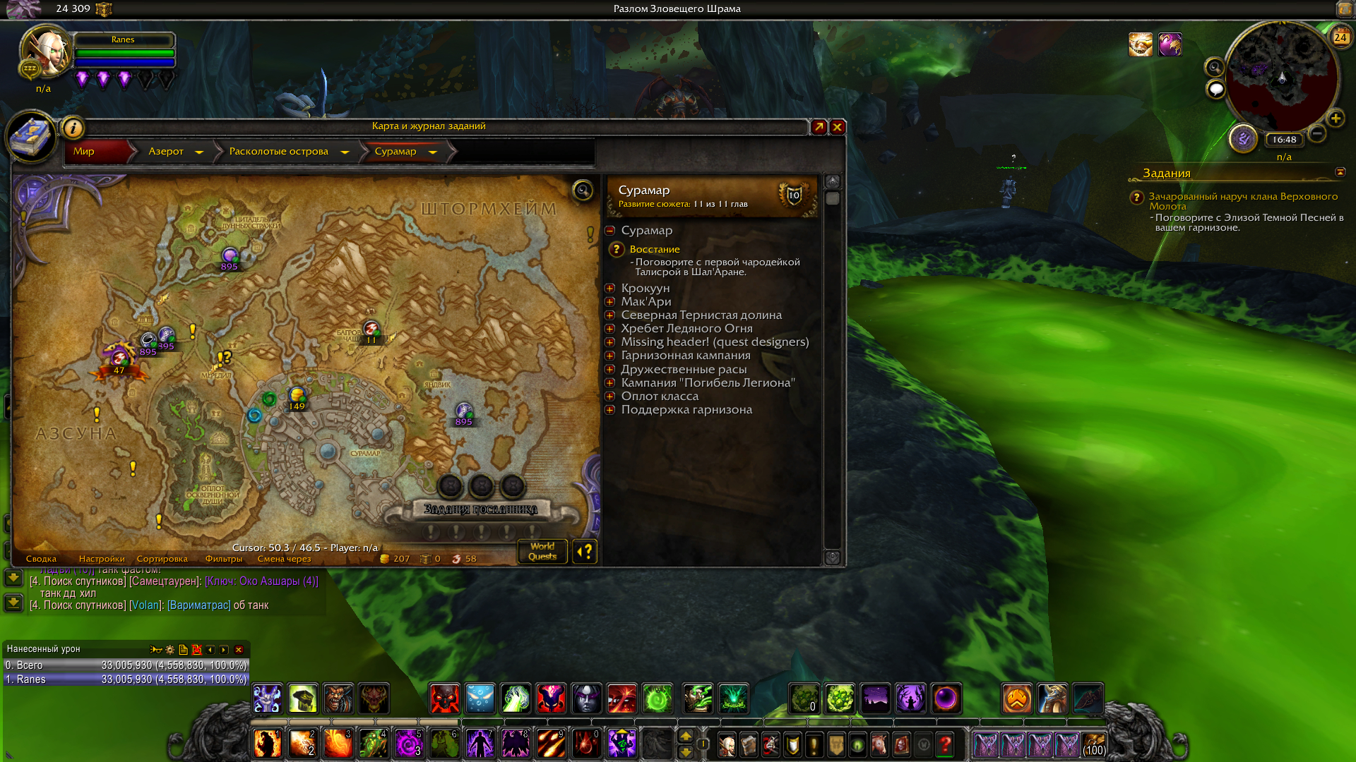 | Description | Здравствуйте. Столкнулся с проблемой, связанной с локальными заданиями во время вторжения Легиона - их попросту нет, из-за чего я не могу получить реагент для задания на классовое средство передвижения Чернокнижника - https://ru.wowhead.com/quest=46239/ядро-чистой-скверны Выполнены все цепочки заданий, и получено достижение для полетов по Расколотым островам. Чернокнижник - это альтернативный персонаж, но есть другие локальные задания, но только не от вторжения, та же самая проблема на главном персонаже. | ||||