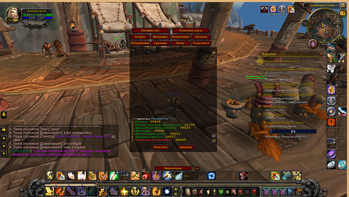 Аддон тут не причём, это сервер штормило Но аддон сильно бы помог решить проблему - либо вы выполнили лишние квесты очень давно, либо атака на Крутогорье так повлияла Про цепочку на союзную расу сказать не смогу, не делал на тауренов цепочку) |
