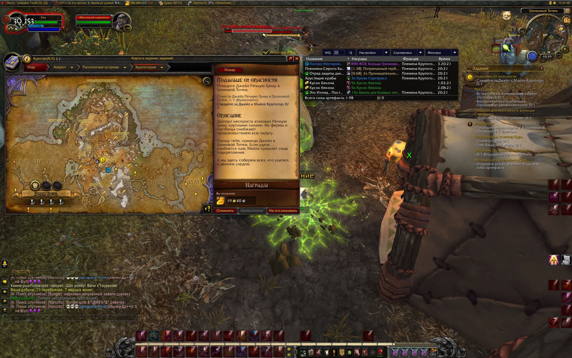 http://forum.epicwow.com/topic/6157-soedinenie-s-serverom-razorvano%C2%A0wow51900319/ сервер споткнулся и упал. или кто то перерезал провода от интернета. Предатор считает, что ошибка не связана с аддонами, поскольку до их загрузки дело не доходит даже. а по теме - пока Вы не проверите состояние квестовых цепочек подсказок не будет. Альтернативный вариант проверки , без аддонов - вовхед, команда чата .q s xxxxx и вставка скриншотов сюда в тему. Фактически наблюдение за наблюдающими показало, что фазу местности можно запороть несколькими способами - не завершить выполнение квестов Атаки Легиона на Крутогорье, начать выполнение квестовой цепочки союзных рас или элементарно нарушить порядок зачета критериев в достижении. Не подсказка, просто совет - за указанный интервал времени можно прокачать с нуля несколько чаров разных классов, например рыцаря смерти. И выполнить части составных достижений Легиона на разных чарах. В начале марта этого года выполнение всей сюжетной цепочки Крутогорья на шамане заняло 3,5 часа времени. Небольшая задержка была только с посещением инста на обычке. |