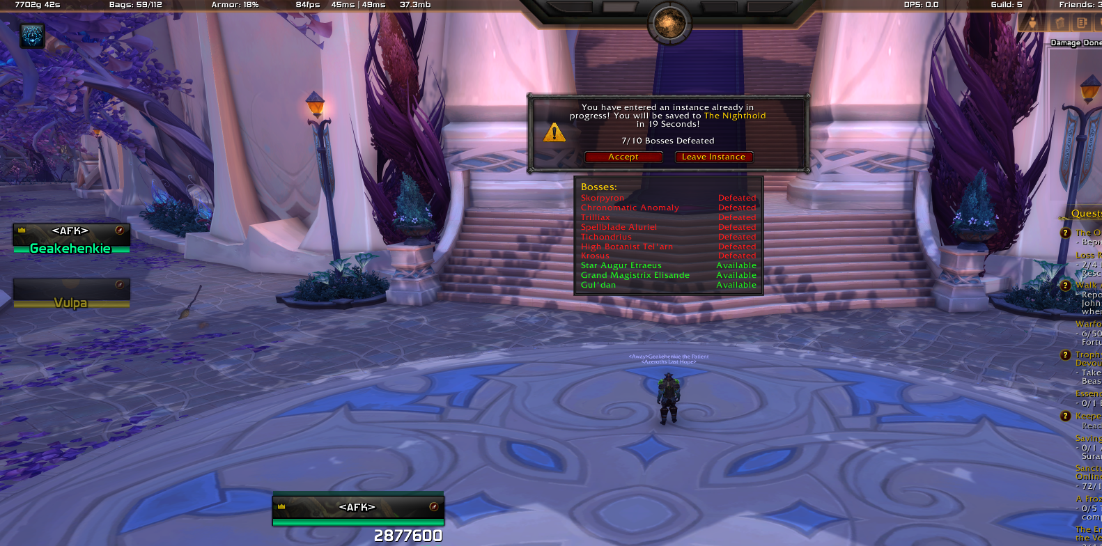 | Description | Hello there we have a small bug in the raid ID lock from legion x5 it's killed on friday 6/10 so yesterday we redo it but its saying 7/10 but star augur etraeus where not up it where already killed we tryed alot of things like reseting the raid but nothing seems to work .. i did post screenshots from our problem i hope you can take a look into this because we are not the only one with this problem (sorry for my poor english ) greetings willie | ||||