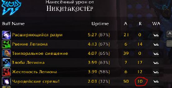 Стрелы обновляют сами себя , правда вот прибавка в 4 процента дает обновление равное практически 75-80% , но если посчитать сумму , то на деле должно быть 19% от любой способности ,и 28% от Чародейской вспышки , по дитеелсу отчетливо видно насколько сильно талант дающий 4 дополнительных % дает нам 86% аптайм одной способности на 4 минуты