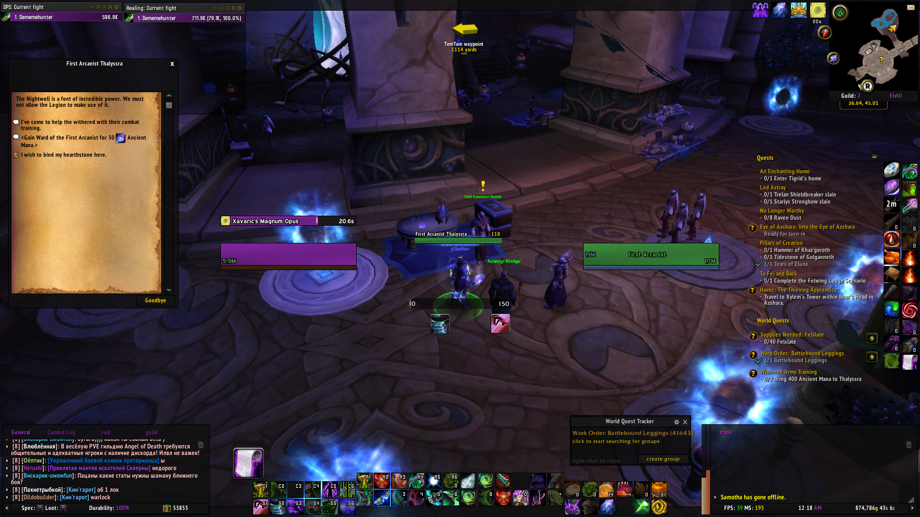 NPC First Arcanist Thalyssra will not return to her original position in front of the room, and will not give World quest Emissary Rewards |
