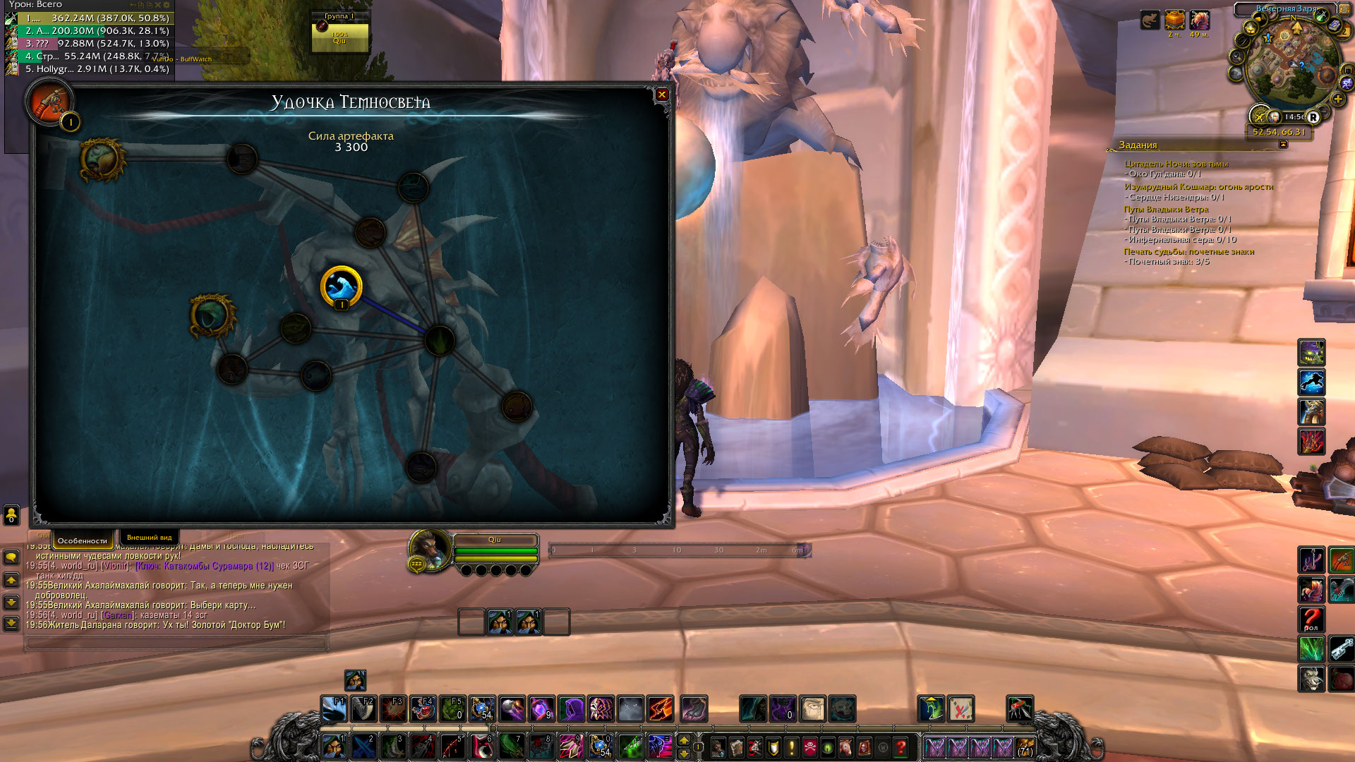 | Additional Information | Перезашла в игру, в Даларане у фонтана, выбрала жемчужену Темносвета и надо заново выбрать Подводное течение, выбрала, раскрылись следующие умения, потратились очки ед. силы артефакта, но ничего не изменилось, так же пишет что нет связи. Повторила 2 раза, очки силы артефакты снимаются по 200, но так же пишет что нет связи. Прикрепила два файла | ||||