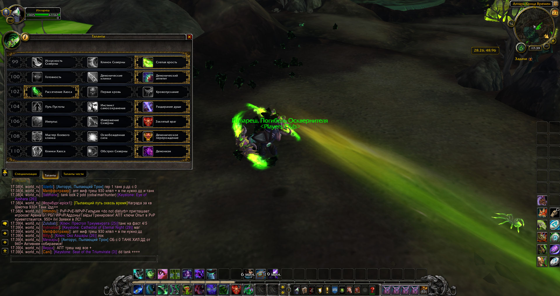 | Description | Сегодня во время игры на демон хантере столкнулся с такой проблемой. Иногда после использования способности Пронзающий взгляд при включенном таланте Демонизм начинает багаться анимация персонажа и интерфейс. Нельзя убрать моба из таргета, а персонаж проигрывает начальную анимацию заклинания перед превращением в демона. Перезаход в игру помогает решить проблему до следующего применения способности, и потом всё повторяется | ||||
