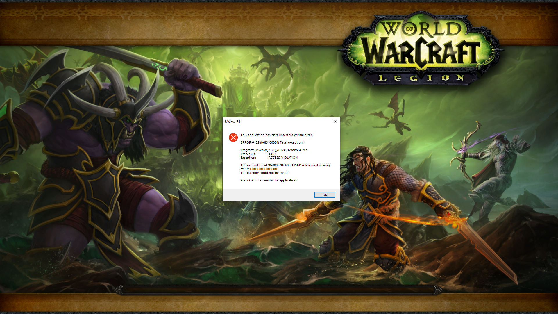 | Description | Здравствуйте! Отваливается клиент. В старых локациях еще можно играть, а при телепортах в локации Легиона и Аргуса через определенное время он просто крашится. И такое началось с 31 числа. | ||||