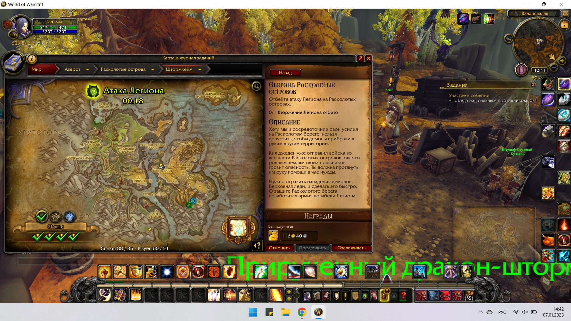 | Description | забагался кв Атака на штормхейм, при прилёте в локацию должно быть автопринятие квеста, а он не принимается соответственно не могу выполнить кв, и ачив https://www.wowhead.com/ru/achievement=11544/%D0%B7%D0%B0%D1%89%D0%B8%D1%82%D0%BD%D0%B8%D0%BA-%D1%80%D0%B0%D1%81%D0%BA%D0%BE%D0%BB%D0%BE%D1%82%D1%8B%D1%85-%D0%BE%D1%81%D1%82%D1%80%D0%BE%D0%B2%D0%BE%D0%B2 и квест https://www.wowhead.com/ru/quest=46247/%D0%BE%D0%B1%D0%BE%D1%80%D0%BE%D0%BD%D0%B0-%D1%80%D0%B0%D1%81%D0%BA%D0%BE%D0%BB%D0%BE%D1%82%D1%8B%D1%85-%D0%BE%D1%81%D1%82%D1%80%D0%BE%D0%B2%D0%BE%D0%B2 | ||||
