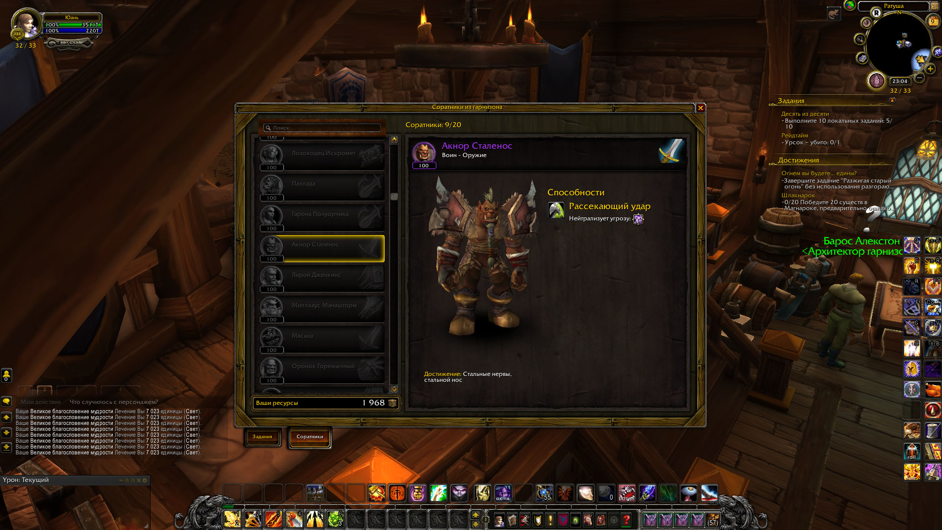 Когда же я построила гарнизон, я не нашла его в списке полученных. Решила пройти снова рейд, но т.к. ачивка уже засчитана, как сделанная, соратника я не смогла получить (делала все, как нужно для ачивы, т.е. убила босса, не трогая при этом будущего соратника.