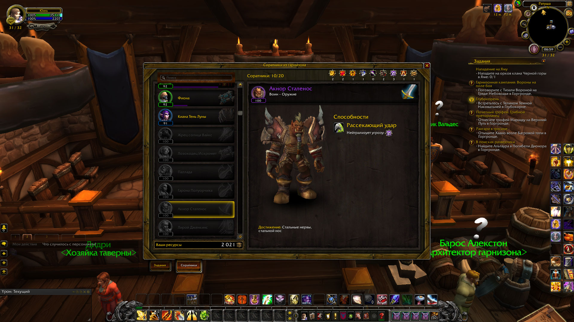 За выполнение в награду дается соратник "Акнор Сталенос", который должен быть автоматом добавиться в список соратников, но т.к. гарнизона на тот момент у меня не было, ничего не добавилось.