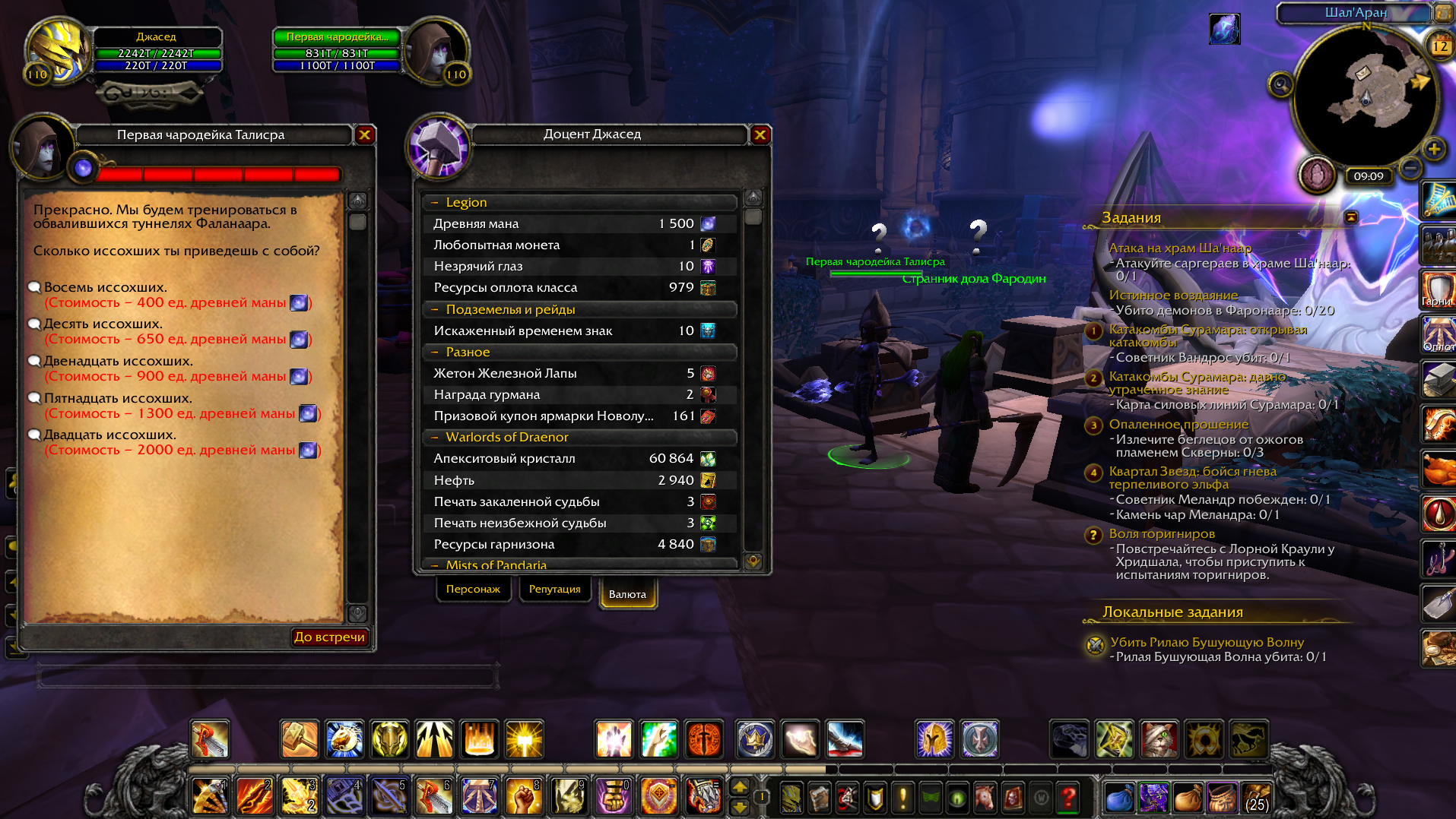 | Description | После выбора пункта "я пришел помочь иссохшим в боевых учениях" в разговоре с NPC Первая чародейка Талисра в локации Шал'Аран открывается экран диалога, с выбором количества иссохших, в котором стоимость всех позиций отмечена как недоступная(красная). При этом достаточное количество ресурса присутствует у персонажа. При прохождении квестовой цепочки первый раз удалось запустить локальное задание. | ||||