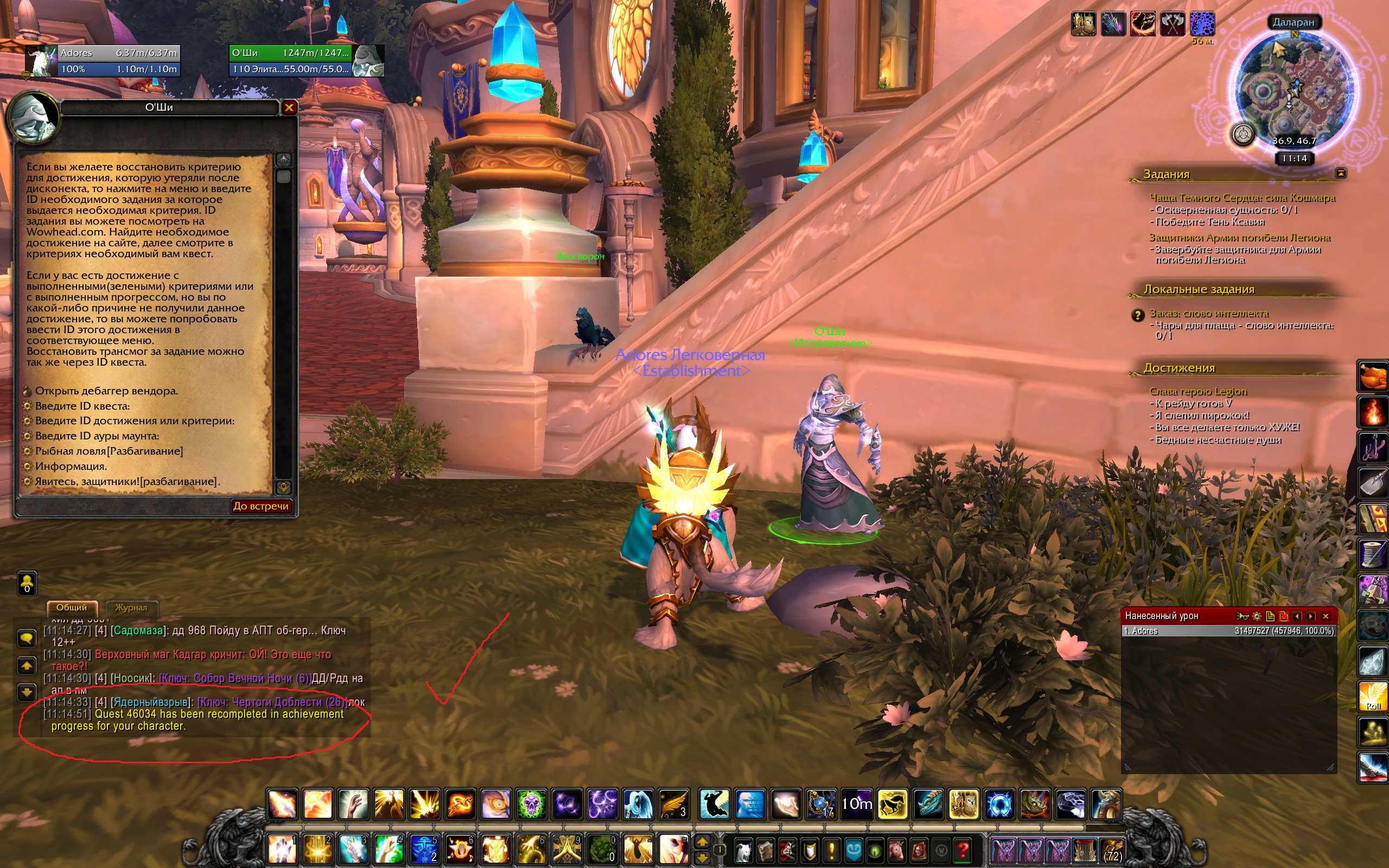 | Description | Дело в том, что квест, взятый на Расколотых Островах у Майев "Защитники Армии погибели Легиона" (id квеста 47137), никак не выполнить. Судя по гайдам, нужно лететь в Оплот жреца и искать там следующий квест "Интересное заболевание" (id 45343), который в свою очередь ведет по сценарию к финальному квесту - "Защитник Эльталисте" (но последний - у меня выполнен id 46034). Поэтому, в связи с тем, что квест на того самого нужного защитника был выполнен ранее, я не могу продолжить цепочку. Разбагивание "Явитесь защитники" не помогает, кидает в начало цепочки, а защитники все завербованы, и повторно сделать это невозможно! Репутация со всеми прокачана, оплот завершен, облики открыты. Как пройти тогда квест "Защитников армии..."? | ||||