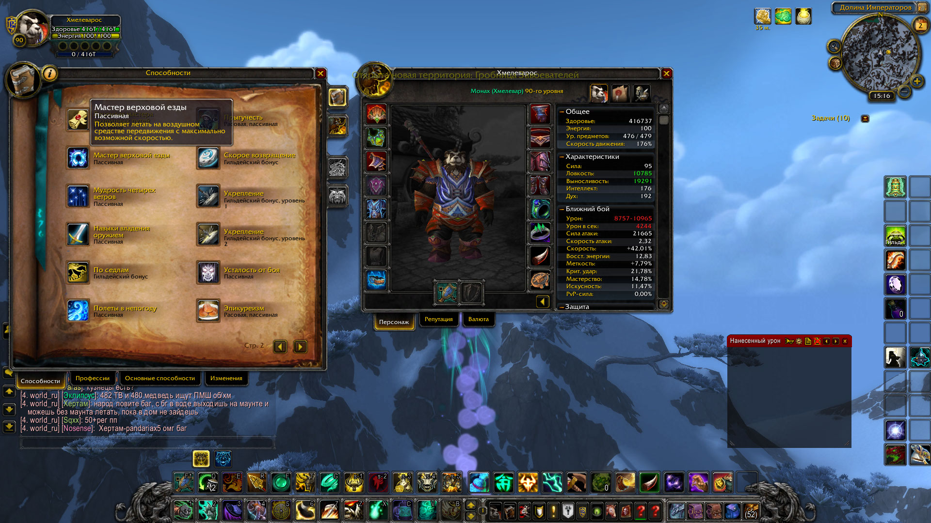 2. Нажать "полёт дзен" на открытом пространстве с навыком верховой езды максимального уровня