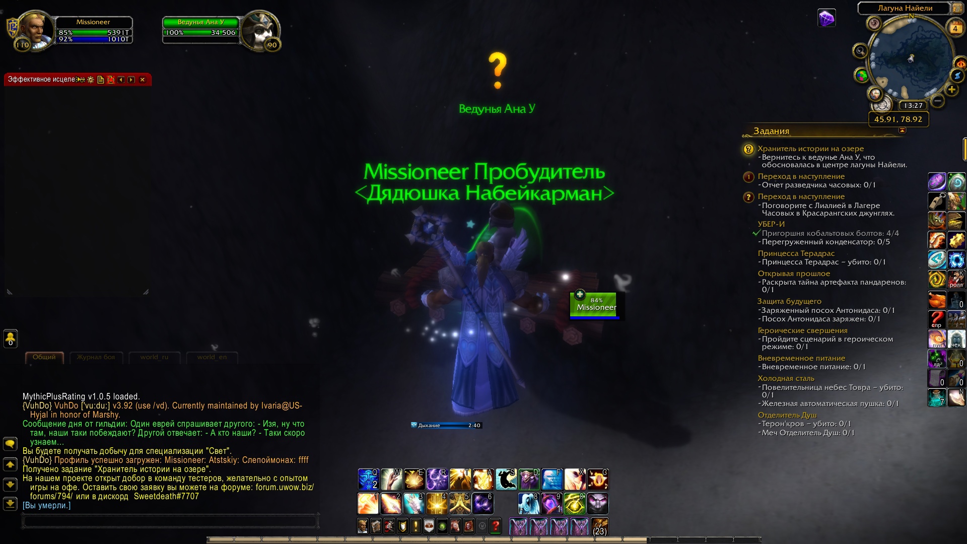 | Steps To Reproduce | 1. Взять квест https://www.wowhead.com/ru/quest=30669/хранитель-истории-на-озере 2. Сесть на плот 3. Плыть к центру озера | ||||