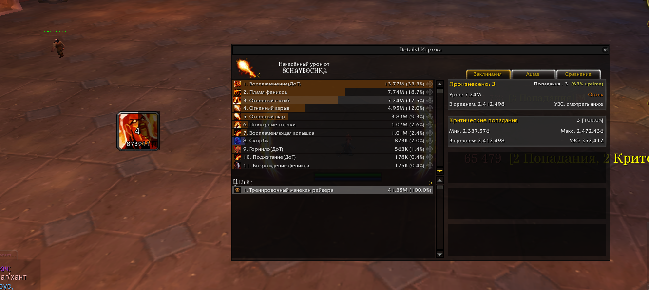 | Description | способность мага специализации Огонь https://www.wowhead.com/ru/spell=2120/%D0%BE%D0%B3%D0%BD%D0%B5%D0%BD%D0%BD%D1%8B%D0%B9-%D1%81%D1%82%D0%BE%D0%BB%D0%B1 зайдя в Лого Нелтариона заметил странную вешь, спел в большое количество мобов бьет меньше , чем малое (10-15 целей) лог боя https://www.warcraftlogs.com/reports/Tba2VBHczNQmR98v/#fight=last&type=damage-done&source=63 видим число 1.6 (урон при фул проках) так как максимальный урон столба равен у меня 2.4 | ||||