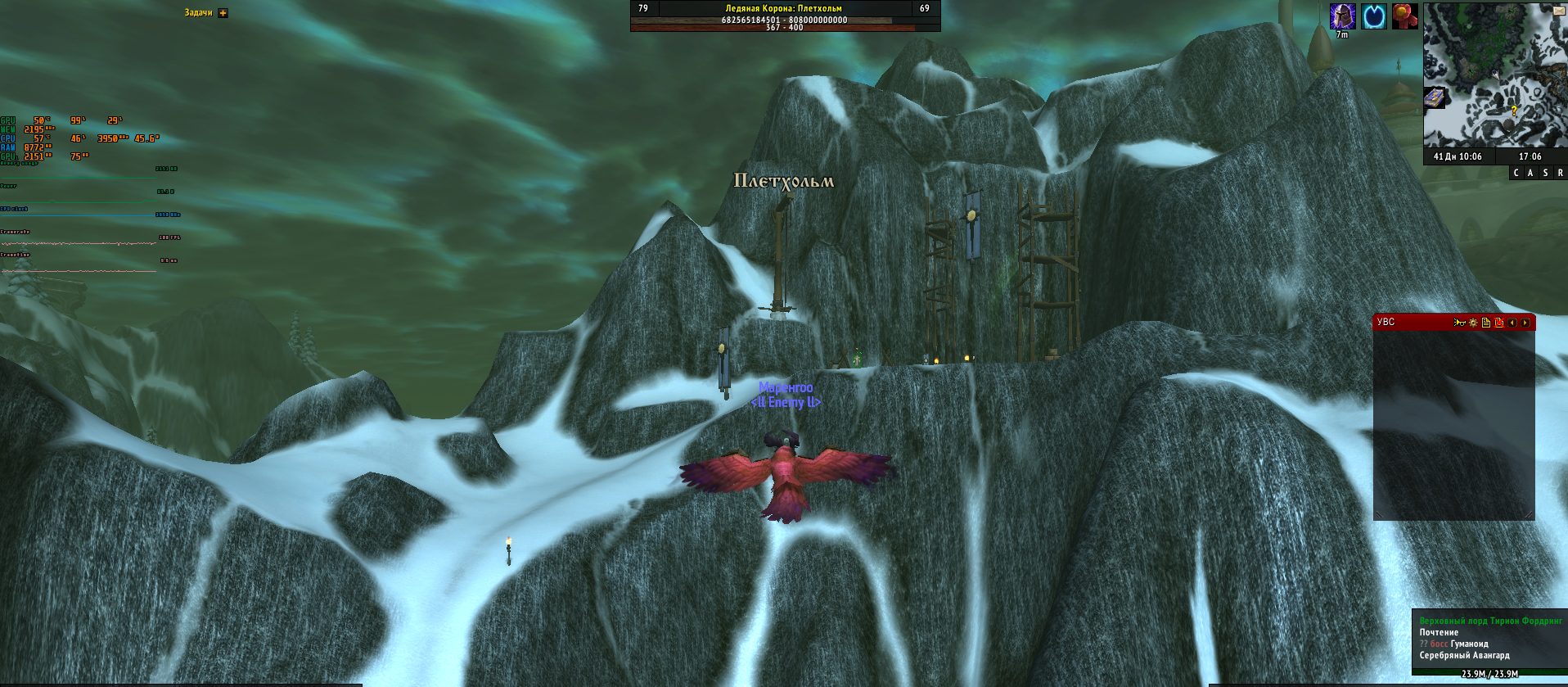 | Description | Не могу сдать кв и продолжить цепочку квестов в Ледяной Короне(Локация: Вершина Рыцарей) . Сделал все предыдущие квесты, осталось два квеста которые ведут к Тириону, но его на месте нет .....там вообще никого нет, хотя могу туда прилететь через распорядителя полётов,а вот улететь оттуда таким же образом не могу . Там видимо меняется фаза или она сломана .Когда отлетаешь в сторону Плетхольма ,так чтобы появилась надпись * Плетхольм* , появляется Тирион , но стоит подлететь ближе,появляется надпись * Вершина Рыцарей* и всё, Тириона сдувает вместе со всеми НПС | ||||