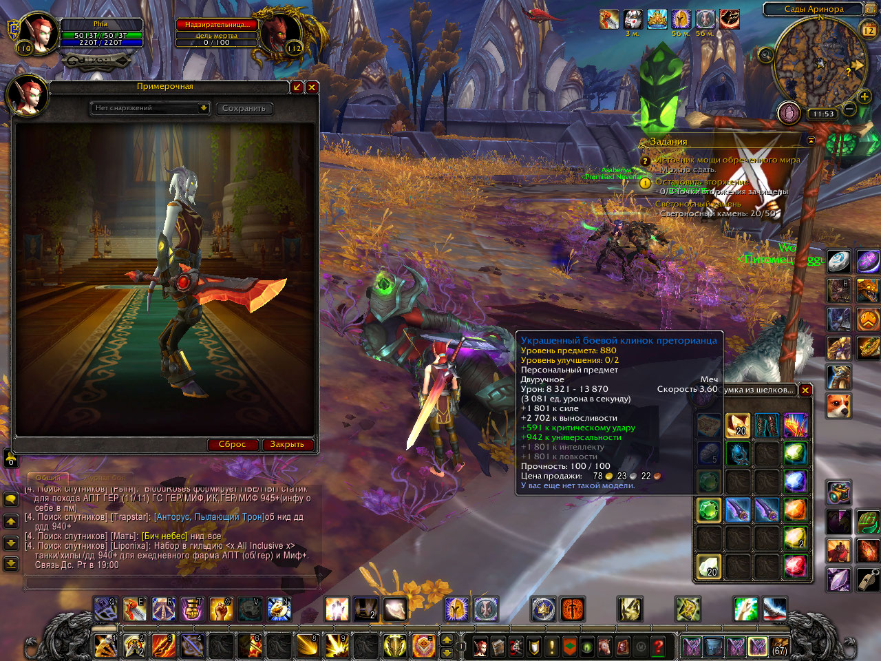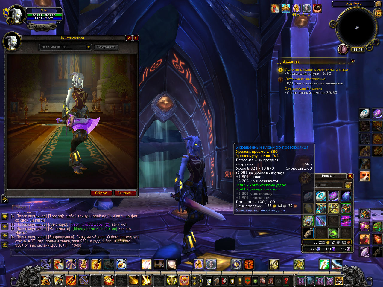 | Description | В Мак'Ари с рарника И'беды выпал "Украшенный боевой клинок преторианца", но не добавился в коллекцию, хоть и стал персональным. Так же случилось и с "Украшенным клеймором преторианца". Он выпал из сундука и стал персональным, но не добавился в коллекцию | ||||