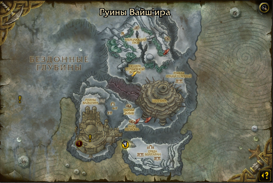 | Additional Information | https://www.wowhead.com/ru/npc=42074/подводный-ловчий-азжентус в итоге, после сдачи ему этого квеста, начинает и заканчивает следующий: https://www.wowhead.com/ru/quest=25859/посторонним-вход-запрещен Эти квесты требуются для выполнения достижения "Подводная одиссея в Вайш'ире" | ||||