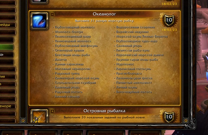 | Description | В игре есть две рыбы, которые можно выудить только в определенное время года. Это Зимний кальмар item=13755/зимний-кальмар, которого можно выудить между 23 сентября и 19 марта, и Сырой летний окунь item=13756/сырой-летний-окунь, которого можно поймать с 20 марта до 22 сентября. Начиная с января, пыталась поймать Зимнего кальмара и до 19 марта т.г. Ловится только Сырой летний окунь. В итоге это последняя рыба для ачивы achievement=5479/океанолог. | ||||