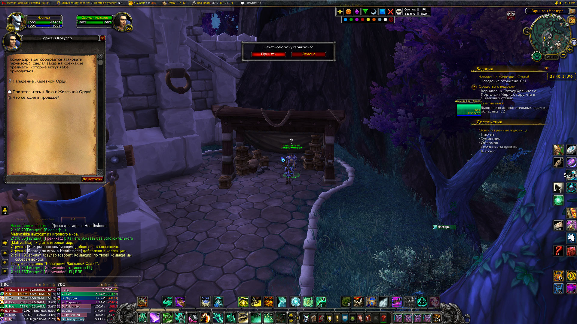 | Description | Появился квест нападение на гарнизон "Нападение Железной орды" (https://www.wowhead.com/ru/quest=36655/%D0%BD%D0%B0%D0%BF%D0%B0%D0%B4%D0%B5%D0%BD%D0%B8%D0%B5-%D0%B6%D0%B5%D0%BB%D0%B5%D0%B7%D0%BD%D0%BE%D0%B9-%D0%BE%D1%80%D0%B4%D1%8B) Я поговорила с npc, он нападение не началось... | ||||