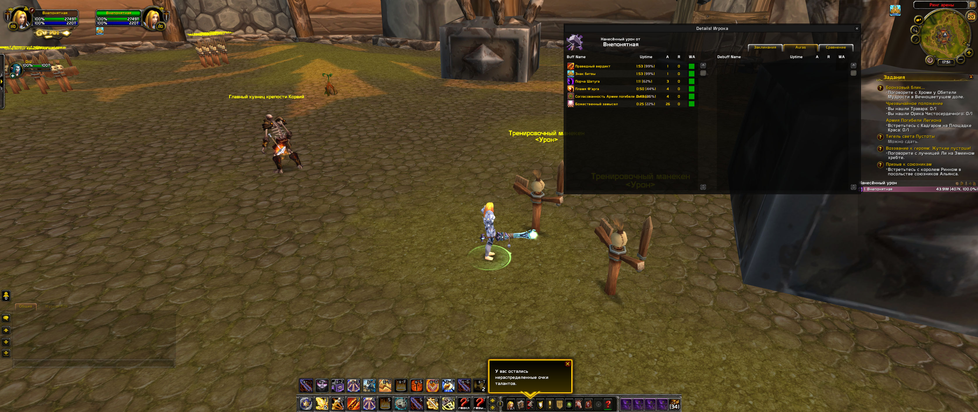 Сделал тоже тест с Details, паладин 100 уровня против манекена 102 уровня, в гарнизоне: https://imgur.com/3l5M4yT 200 вердиктов + 1 буря (мисклик) = 29 проков. |