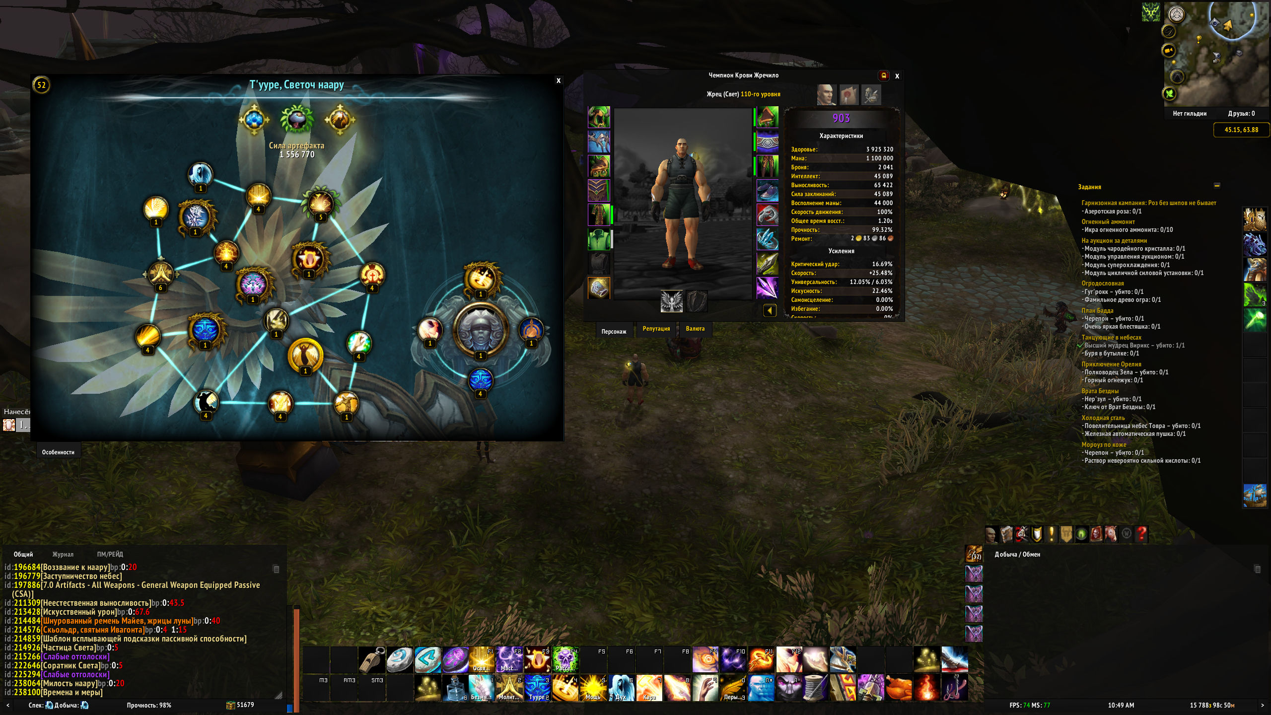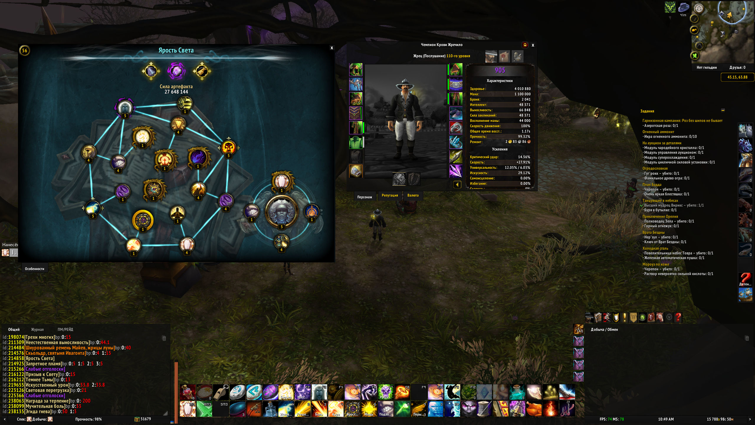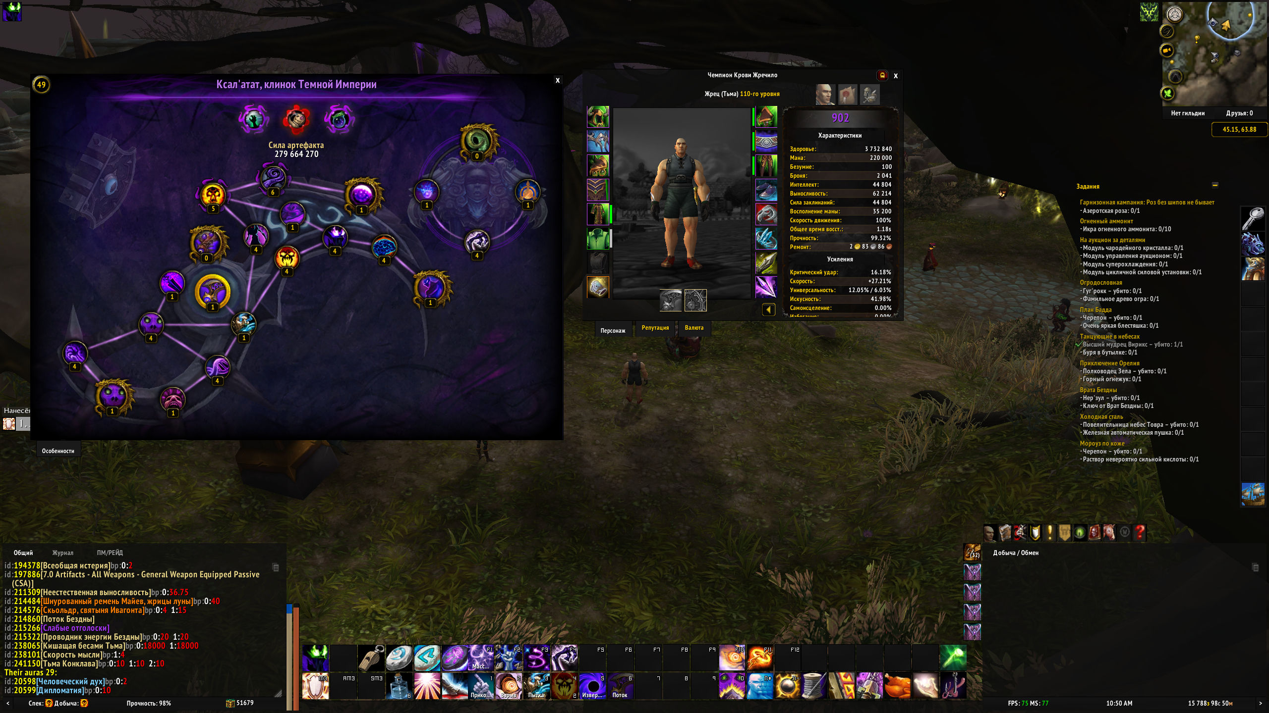 | Description | У всех артефактов существуют две ауры: [https://www.wowhead.com/ru/spell=213428/%D0%B8%D1%81%D0%BA%D1%83%D1%81%D1%81%D1%82%D0%B2%D0%B5%D0%BD%D0%BD%D1%8B%D0%B9-%D1%83%D1%80%D0%BE%D0%BD] и [https://www.wowhead.com/ru/spell=211309/%D0%BD%D0%B5%D0%B5%D1%81%D1%82%D0%B5%D1%81%D1%82%D0%B2%D0%B5%D0%BD%D0%BD%D0%B0%D1%8F-%D0%B2%D1%8B%D0%BD%D0%BE%D1%81%D0%BB%D0%B8%D0%B2%D0%BE%D1%81%D1%82%D1%8C] смысл этих аур производить увеличение выносливости и урона за каждую приобретённую способность, т.е. за уровень артефакта. согласно списку изменений с wowhead на версии 7.2 обе эти ауры стали добавлять 1% за каждую приобретённую способность. просмотрев свои параметры я увидел неведомые цифры. мало того что совсем не соответствует моим уровням артефакта в различных моих спеках, так ещё и отсутствуют все используемые спеком стихии. например холик наносит урон физический, свет и огонь (https://www.wowhead.com/ru/spell=14914/%D1%81%D0%B2%D1%8F%D1%89%D0%B5%D0%BD%D0%BD%D1%8B%D0%B9-%D0%BE%D0%B3%D0%BE%D0%BD%D1%8C), т.е. при выводе этой ауры я должен видеть три модификатора на каждую стихию, а вижу только одну, и какая это стихия - неизвестно. так же это касается и ауры артефакта [https://www.wowhead.com/ru/spell=214926/%D1%87%D0%B0%D1%81%D1%82%D0%B8%D1%86%D0%B0-%D1%81%D0%B2%D0%B5%D1%82%D0%B0], в которой должны быть прописаны два поднятия на 5% физического урона и света, ибо всё в игре есть урон, только у лекарей урон наносится с обратным знаком, т.е. для нас исцеляет. у моего ШП аура [https://www.wowhead.com/ru/spell=213428/%D0%B8%D1%81%D0%BA%D1%83%D1%81%D1%81%D1%82%D0%B2%D0%B5%D0%BD%D0%BD%D1%8B%D0%B9-%D1%83%D1%80%D0%BE%D0%BD] вообще отсутствует. создал ШП на Legion FUN - там так же нет этой ауры. т.е. по сути что есть у ШП артефакт, что нет создав некоторые классы на Legion FUN, в частности БДК я увидел что у него в ауре [https://www.wowhead.com/ru/spell=213428/%D0%B8%D1%81%D0%BA%D1%83%D1%81%D1%81%D1%82%D0%B2%D0%B5%D0%BD%D0%BD%D1%8B%D0%B9-%D1%83%D1%80%D0%BE%D0%BD] имеется два значения, пускай одно не по уровню артефакта, но явно несправедливый ап класса. | ||||