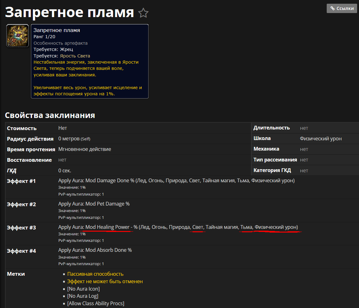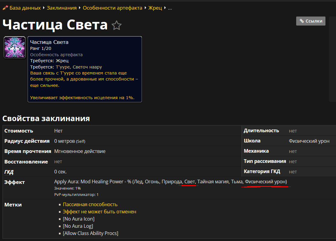 и как я понимаю, все эти силы заклинаний у [https://www.wowhead.com/ru/spell=137031/%D0%B6%D1%80%D0%B5%D1%86-%D1%81%D0%B2%D0%B5%D1%82] и прочих для примера [https://www.wowhead.com/ru/spell=137019/%D0%BC%D0%B0%D0%B3-%D0%BE%D0%B3%D0%BE%D0%BD%D1%8C] преобразуется за счет пассивного ядра класса и спека в обычный классический физический урон, как у варов, рог и причих. этим разрабы ушли от перекосов времён лича, когда роги резали тряпок как хотели из за отсутствия брони. сейчас просто единый физический урон, единая броня и хил не хилит а дамажит с повышением здоровья |
