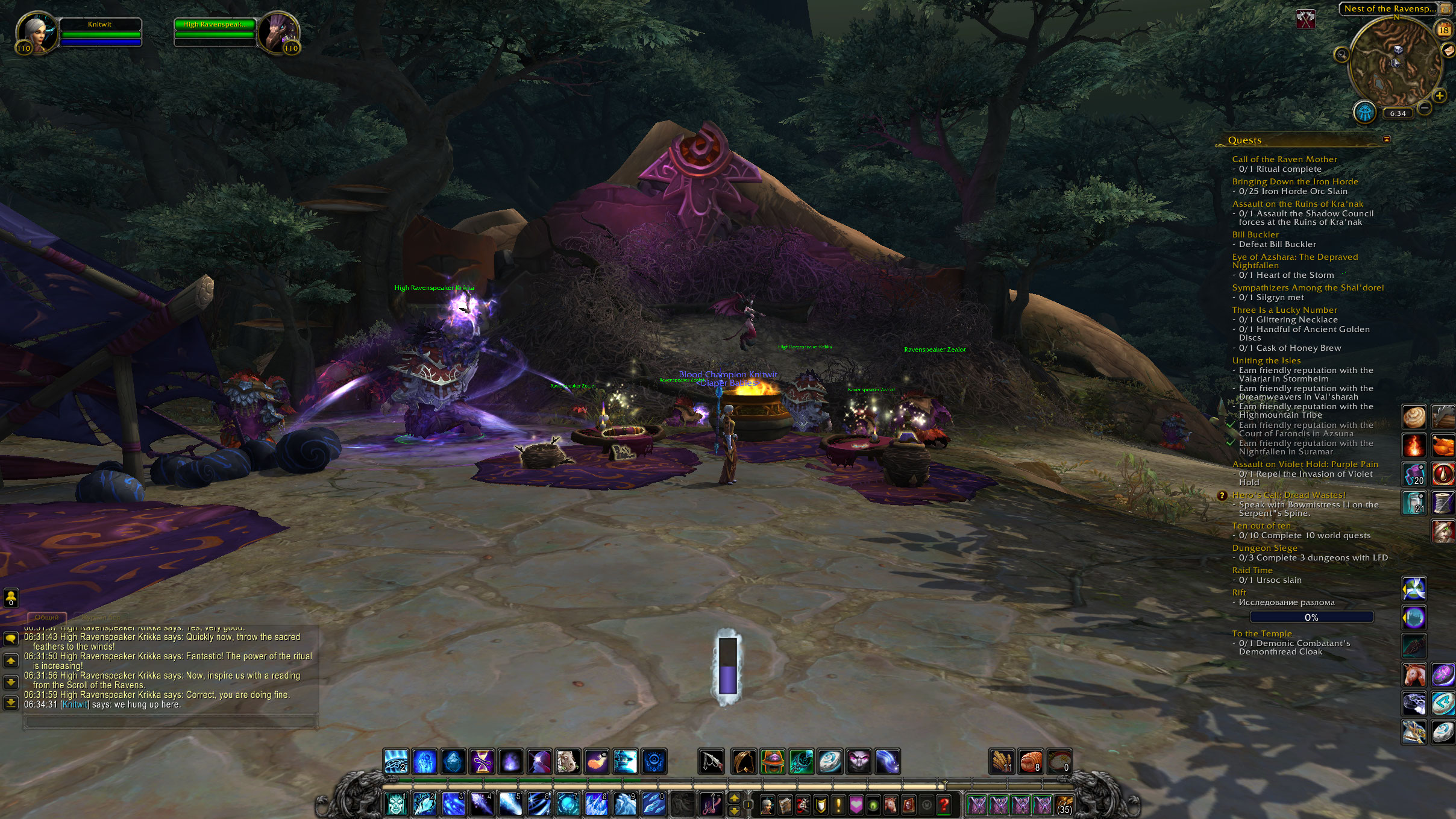 | Additional Information | От тестера: Баг подтверждаю, ритуал останавливается на середине и дальше ничего не происходит до исчезновения моба, рестарт ивента не работает, играя за орду, прогресс исчезает после 1-2 действий Пруф за Альянс : https://youtu.be/HoUyg0vOylA Пруф за Орду : https://www.youtube.com/watch?v=HDFkIuznMP8 Как должно работать: https://www.youtube.com/watch?v=3nrQwG3T4Tg | ||||