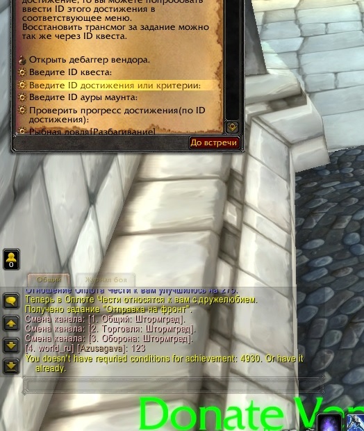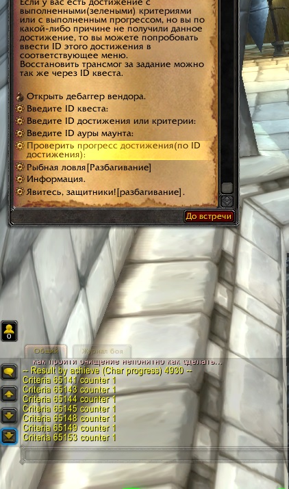У Оши в столицах пробовали вводить ID достижения? https://www.wowhead.com/ru/achievement=4930 Должен показать вам, какие квест необходимо выполнить для ачивки |