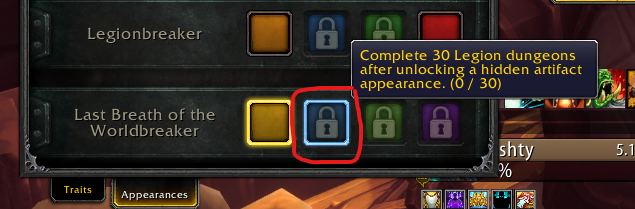 | Description | First of all I want to apologize if ever there is already a topic on this subject, I don't understand Russian. Once you unlocked it, you should be able to unlock 3 new colors with different contents. For my case, I'd like the second one where we need to do 30 legion dungeons. For a unkown reason, after unlocked the apparence, it counted me all the dungeons that I did before unlocking it ( like 24/30), but once I got 30/30, the color was not unlocked, after a relog, i'm litteraly stuck at 0/30 and it doesnt go up anymore even after did some dungeons. I imagine the others colors may be bug aswell, but can't confirm it for now. Only for the blue skin. I've no proof that I did dungeons since i'm stuck at 0, but I wouldn't bother doing this report if I didn't. | ||||