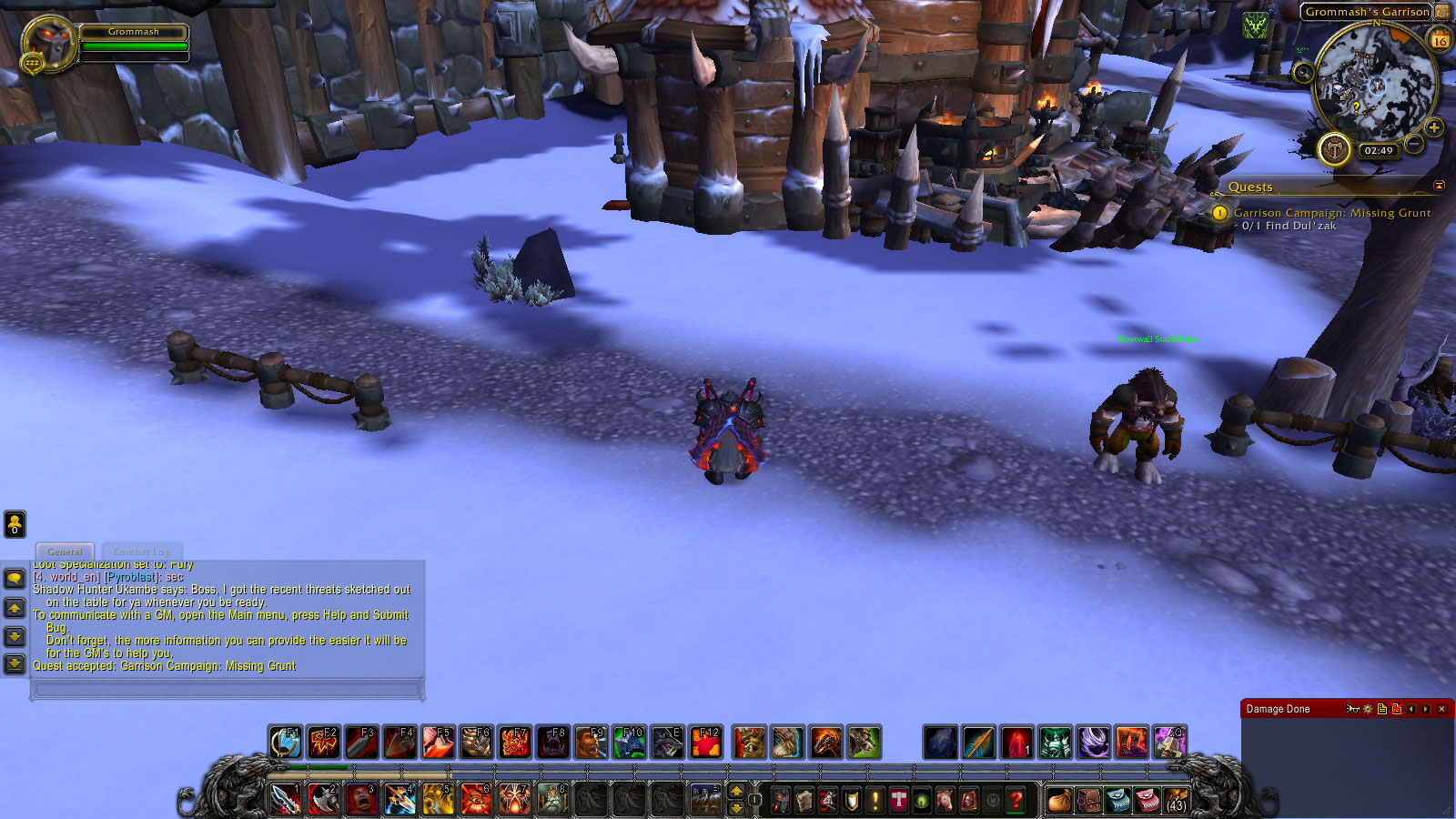 | Description | Garrison Campaign: Missing Grunt is missing an NPC required for the quest. NPC should be lying on the floor on the marked location. https://www.wowhead.com/quest=36261/garrison-campaign-missing-grunt This bug was observed in a LvL 3 Garrison, so take that into consideration, maybe it's a problem with phasing. This NPC should be on the location https://www.wowhead.com/npc=84787/dulzak | ||||